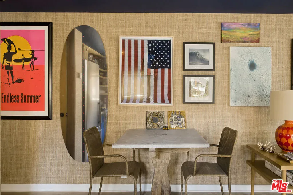 Professionally Designed Beach home in Paradise Cove with hillside views. Year-round living or Vacation getaway. Wide plank natural European white oak floors throughout, with wallpaper in grass cloth over drywall. Kitchen features a Viking range and stainless steel Liebherr German fridge. Bathroom with Japanese tile, custom Surf’s Up Laguna Beach wallpaper and white marble counter. The walls and curtains in master bedroom showcase Katherine Rally hand blocked fabric from Bali. Side patio with outside shower. Located on the Beach level in a cul de sac. Just steps to the sand! Move-in Ready for Summer.