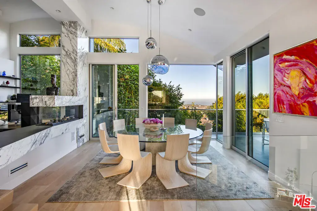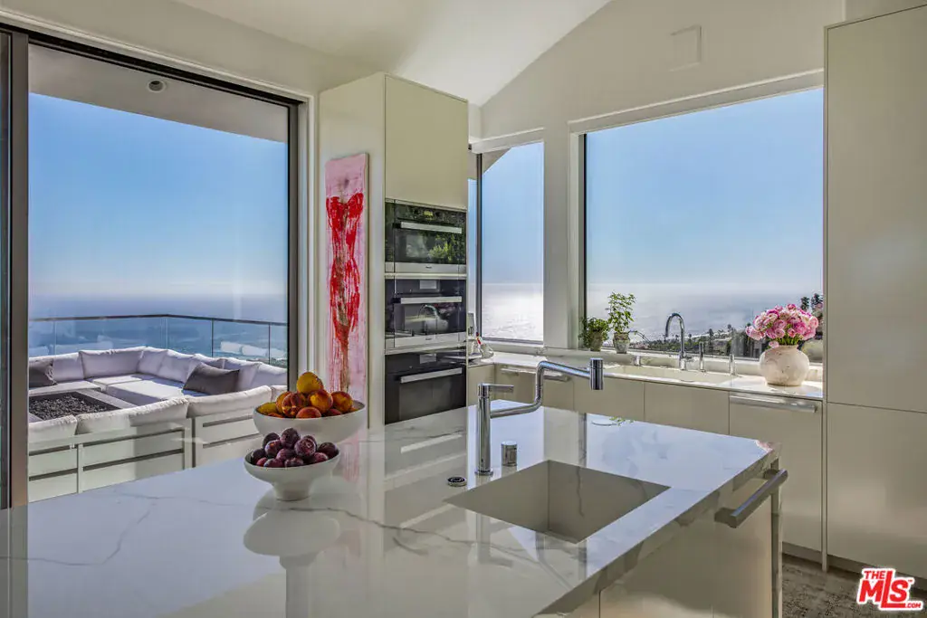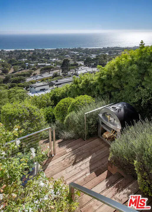 Welcome to a One-of-a-kind entertainer’s paradise with unobstructed sunrise and sunset ocean views. Rare opportunity in Malibu Park to own a property that has Primary View Preservation Rights. This spectacular 3 bedroom 3.5 bath residence was extensively and thoughtfully remodeled with custom, high end designer finishes. Enter through stainless steel security gates into a tranquil entrance atrium where you can enjoy the ocean breeze and soothing sounds of a waterfall feature before being greeted by high ceilings, oak floors and spectacular panoramic views. The Gourmet kitchen features premium Dornbracht fixtures, Miele appliances and an outdoor Italian Pizza oven. Two sculptural marble fireplaces and floor to ceiling sliding doors that open up to approximately 2,000 sf of expansive Neolith-clad decks add dimension to the main entertaining level. The media room is complete with surround sound, custom black out curtains, and features a Wine connoisseurs dream: a temperature-controlled jewel of a wine room designed to display 450 bottles. The luxurious Primary suite features a decorative marble fireplace, large closet, motorized blinds, large steam shower and soaking tub with ocean views.An Entertainers’ dream on the third level includes a stunning Ipe wood deck and a custom infinity saltwater pool with floating spa, fire pit, bar area, and a gym. The Landscaped, fenced in yard with outdoor lighting, includes a variety of mature fruit trees and flowers.Every detail has been thought of, a multi-zone speaker system, security cameras, Lutron lighting, tank-less water heater, and Halo water filtration system. Minutes from the famous Zuma beach, this one-of-a-kind Masterpiece is not to be missed!