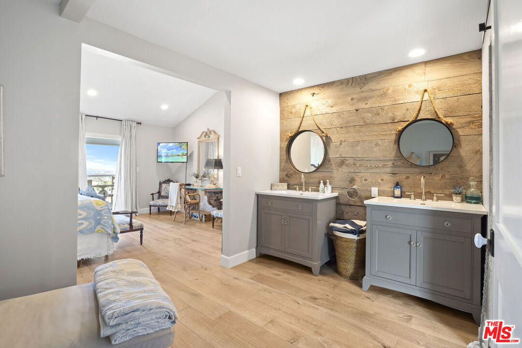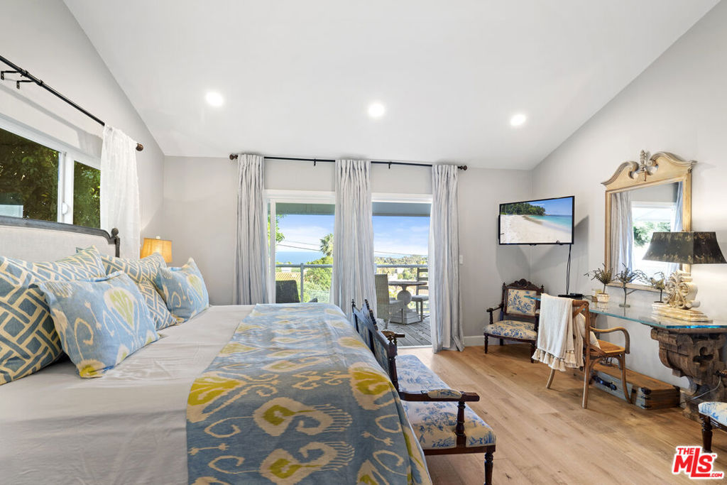 Quiet, coastal living in Malibu adjacent to Point Dume! This renovated farmhouse offers sweeping ocean, Queen’s Necklace, Catalina, and mountain views among lush gardens and multiple areas to unwind, recharge, and entertain. Situated on nearly 3/4 of an acre, peace and privacy abound just moments from beaches, markets, restaurants, schools, and more. Inside, the home has been furnished to perfection. A large living room features a covered patio with huge ocean views and gently flows into a den and the kitchen, which boasts stainless steel appliances, a dining area, and access to the backyard. The primary suite offers ocean views, access to an outdoor deck, and an en-suite bathroom with dual vanities, a shower, and a soaking tub. There is a second ocean-view guest bedroom and full bathroom on the second floor. On the ground level, there is a third bedroom with an en-suite bathroom and outdoor access, a study, a garage with a laundry area, and a media room with accordion doors seamlessly connecting you to an expanisve backyard with canyon views. The grounds have been meticulously maintained and feature beautiful blooming flowers, mature trees and hedges, a fence enclosing most of the property, and several peaceful outdoor spaces for lounging, dining, and enjoying all that Malibu has to offer.