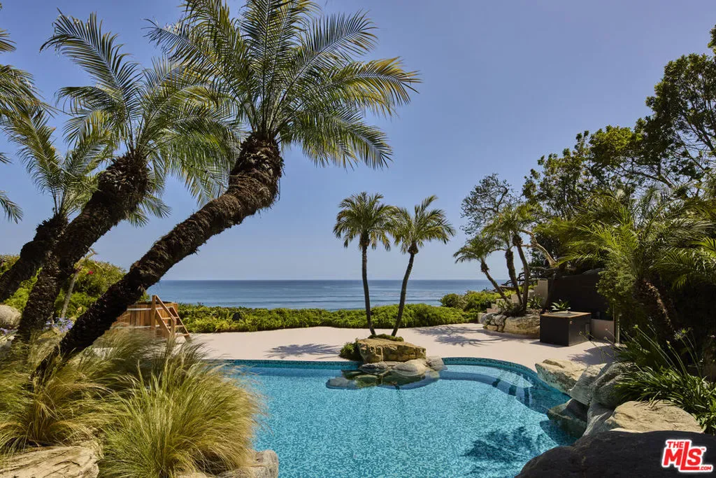 A Point Dume legacy estate of rare provenance and architectural significance, once home to legendary host Johnny Carson, this extraordinary compound spans over four pristine acres across four parcels, commanding panoramic views of the Pacific Ocean, Queen’s Necklace, and Paradise Cove. Designed by renowned architect Edward R. Niles, the residence is a sculptural interplay of glass, wood, and geometry, a modernist composition that rises dramatically above the bluffs. At its heart lies an awe-inspiring arboretum pavilion, where a soaring 30-foot glass ceiling latticed with wood slats floods the interiors with natural light. Anchored by a striking copper and glass sunken fireplace encircled by built-in seating, this space seamlessly transitions to bluff-top terraces, a koi pond, and cascading water features. The main level flows effortlessly between dramatic entertaining areas and intimate retreats: a triangular dining room with ocean and pool vistas, a black marble and wood bar lounge, a chef’s kitchen with butler’s pantry, and a glass-walled office that appears to float among the trees. On the lower level, an ocean-view lounge with wet bar opens to expansive terraces, complemented by a screening room and an impressive wine cellar. Occupying the entire upper floor, the primary suite is a sanctuary of luxury, with dual spa-inspired bathrooms, expansive walk-in closets, two private offices, and a fireplace-adorned bedroom opening to a private terrace with whitewater views.The grounds are an oasis of curated gardens, sweeping lawns, and specimen trees. A saltwater pool with grotto waterfall, Jacuzzi, sauna, and cold plunge invite relaxation, while al fresco dining terraces capture the drama of Malibu sunsets. Additional estate features include a circular glass security office with kitchenette and bath, a staff cottage, and motor facilities with three-car garage, Tesla chargers, and capacity for up to 40 vehicles. Across a separate parcel lies a championship tennis complex, framed by manicured rose gardens and sculpture installations. The travertine tennis pavilion offers two guest suites, a full kitchen, fireplace lounge, spa-style locker rooms with sauna, and expansive courtside terraces. Additional guest accommodations include a private guesthouse, greenhouse, fruit orchard, and aviary.A true Malibu icon, 6962 Wildlife Road embodies the convergence of architectural artistry, land, and legacy, creating an estate of unrivaled beauty, privacy, and prestige.