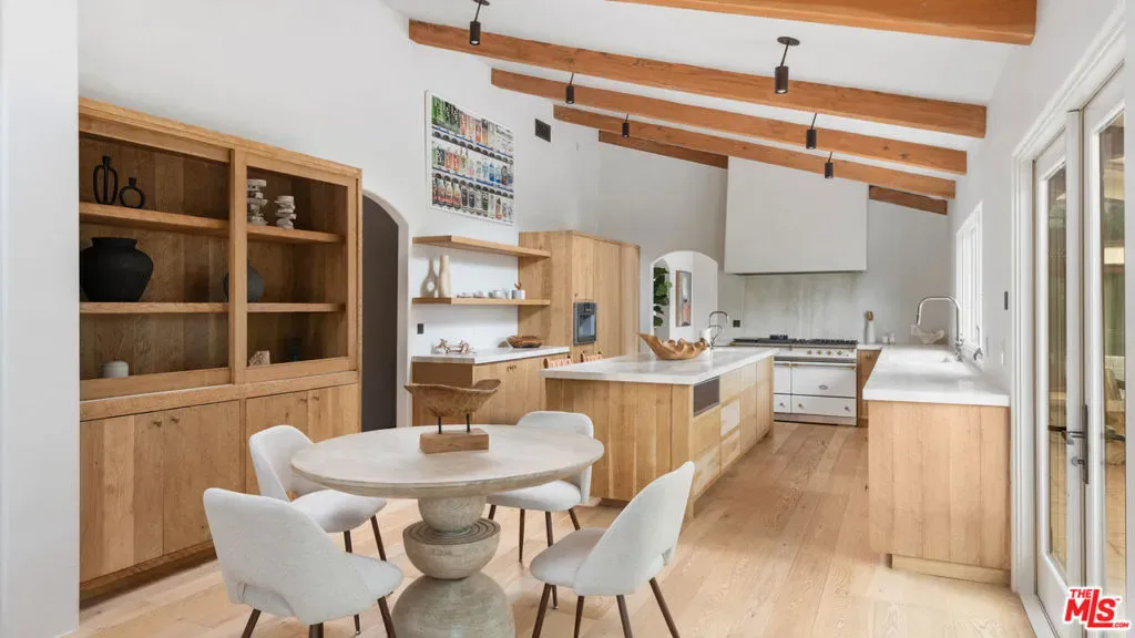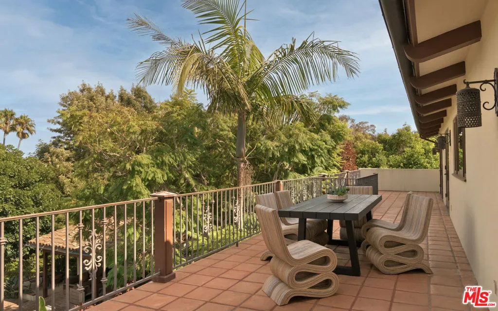 Nestled on one of Malibu’s most prestigious streets, this gated estate offers an extraordinary blend of timeless Spanish architecture, refined interiors, and a resort-style outdoor lifestyle. Set on expansive grounds with a full-size tennis court, pool, and mature landscaping, the residence provides the rare opportunity to experience both elegance and comfort in one of Southern California’s most sought-after coastal enclaves.The home is introduced by a broad stone motor court, lush gardens, and the classic silhouette of a Spanish-style villa with rustic clay tile rooflines. A graceful entryway opens to interiors that immediately set the tone: airy, light-filled, and designed for seamless indooroutdoor living. Inside, soaring vaulted ceilings with exposed wood beams pair with wide-plank oak floors and crisp white walls to create an atmosphere of modern coastal elegance. The formal living room features a dramatic fireplace, walls of glass that frame garden views, and an elegant wet bar with stone counters, perfect for entertaining. Multiple living and family rooms are each anchored by fireplaces and framed by oversized windows or French doors that open to terraces and gardens. Thoughtful details, from arched passageways to custom built-ins and rich wood accents, balance sophistication with a natural sense of ease.At the heart of the home is a chef’s kitchen, outfitted with custom wood cabinetry, stone countertops, and a suite of professional-grade appliances including a La Canche range and Gaggenau appliances throughout. A large center island anchors the space, while vaulted ceilings and walls of glass flood the room with natural light. Direct access to the dining terrace makes al fresco meals effortless, and an adjacent casual lounge with fireplace provides the perfect spot to gather and unwind.The primary suite serves as a serene retreat, featuring vaulted ceilings, a fireplace, and expansive windows overlooking lush greenery. Its spa-inspired bathroom includes a freestanding soaking tub, an oversized glass shower, dual vanities, and a soothing neutral palette, while a custom walk-in closet offers generous storage with bespoke cabinetry. Additional bedroom suites open onto private balconies or garden terraces, offering comfort and privacy for family and guests alike.Designed for a true California lifestyle, the estate boasts multiple terraces, shaded loggias, and lounging areas that embrace Malibu’s indooroutdoor flow. A grand staircase leads down to the expansive pool terrace, where a sparkling pool is surrounded by red-brick patios, framed by mature palms and verdant landscaping. A shaded cabana with lounge seating, television, and dining space makes the area ideal for entertaining day or night. Beyond the pool lies a rare amenity for Malibu, a full-size tennis court complete with lighting and additional lawn areas, creating a private playground for recreation and gatherings.Modern comforts include a premier Savant audio system with smart-home integration, a whole-house water filtration system, and thoughtful upgrades throughout.Privately tucked away yet only moments from Malibu’s iconic beaches, shops, and dining, 7046 Grasswood Avenue is more than a residence, it is a lifestyle estate. From timeless architectural character to state-of-the-art amenities, this property offers the perfect blend of sophistication, comfort, and relaxed coastal living.