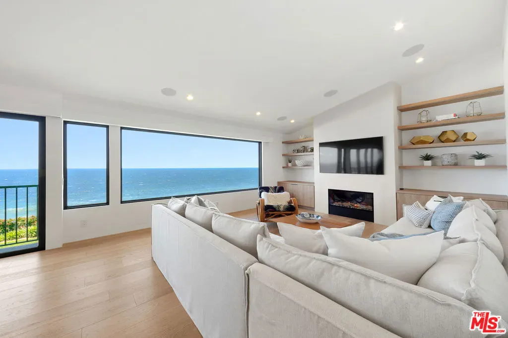 One of the finest front-row residences in the coveted Zuma Bay Villas, this beautifully renovated, designer-perfect condo offers unobstructed 180 degree ocean and whitewater views. Among the largest units in the complex, it features three en-suite bedrooms plus an office/loft. The gourmet kitchen is appointed with a Wolf range, built-in Sub-Zero refrigerator, custom cabinetry, and hand-cut European tile, all opening to an expansive living room with tall ceilings, oak hardwood floors, a cozy fireplace, and walls of glass framing breathtaking coastline vistas. The generous primary suite includes custom closets, a soaking tub, steam shower, and its own sun-filled patio. Additional highlights include custom lighting, a Sonos sound system, blackout shades, and new backup battery system designed to power the residence during outages. A two-car garage and a flat grassy play area sit just outside the unit. Zuma Bay Villas is a quiet, beautifully maintained guard-gated community perched above Zuma Beach, offering resort-style amenities including a pool, spa, tennis court, and private steps to the sand. Enjoy spectacular sunrises and sunsets, surfing, walks on the beach, migrating whales, and playful dolphins all right outside your door. A truly magical place to experience the beauty of Malibu living.