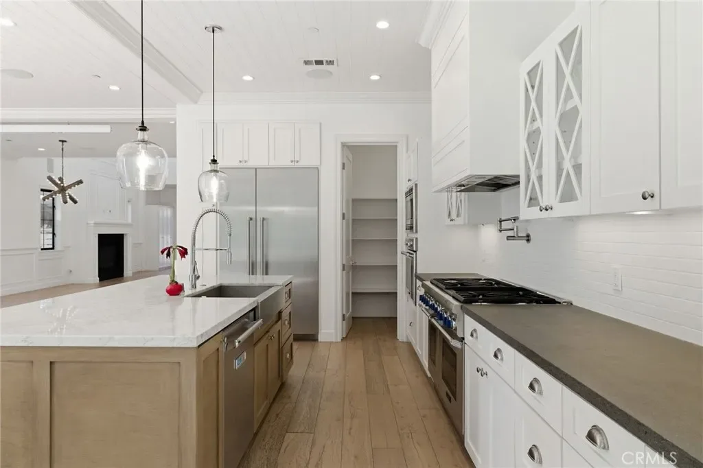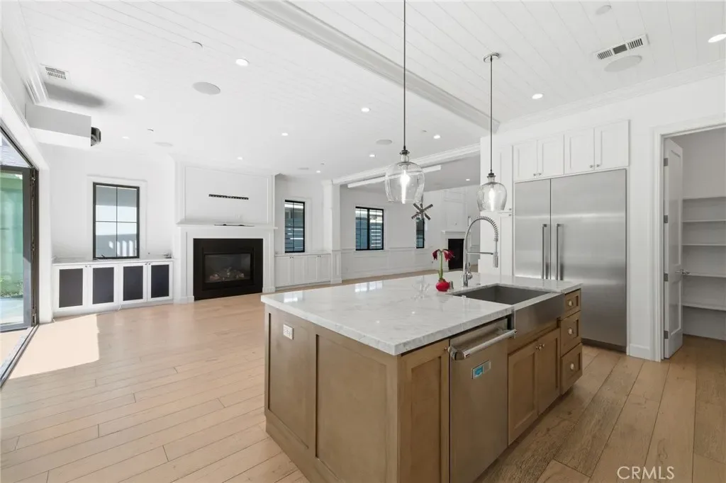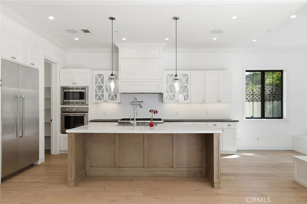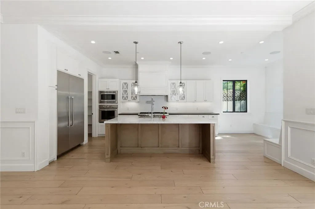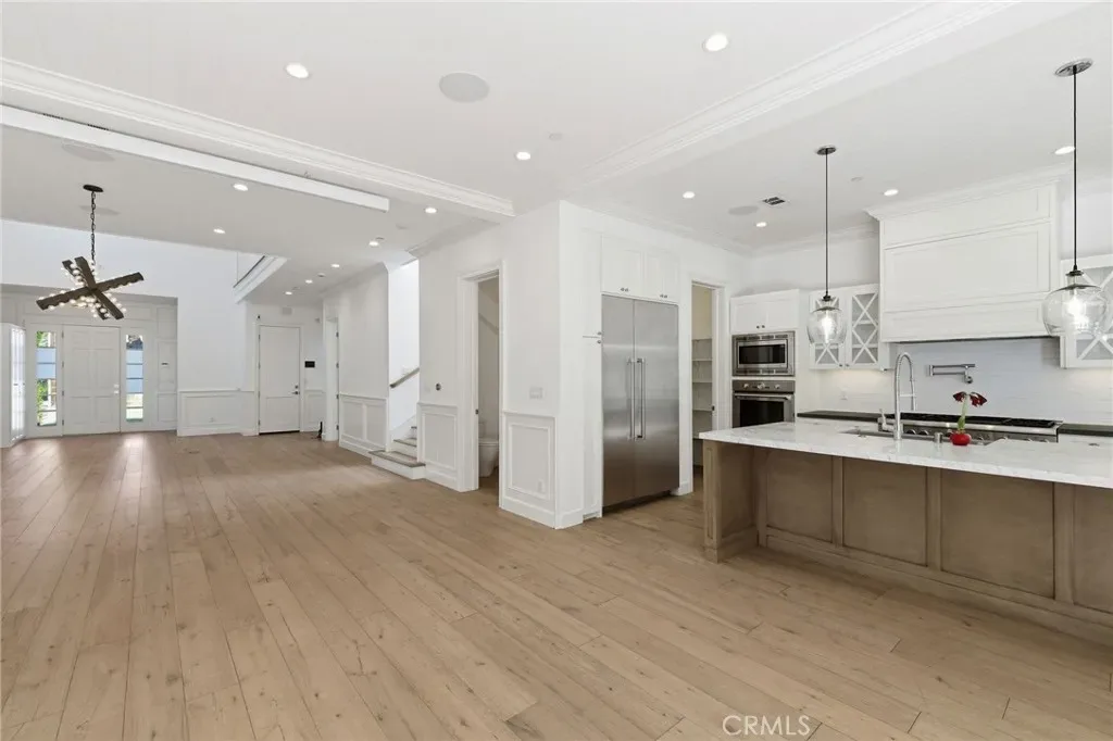 Wide-plank oak floors flow seamlessly throughout the home, complemented by abundant natural light, tall ceilings, fresh white paint, recessed lighting, and refined custom finishes. The beautiful open-concept floor plan is designed for both everyday living and effortless entertaining.