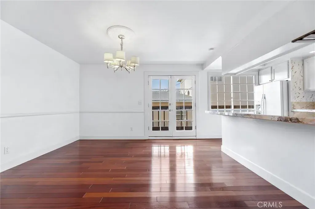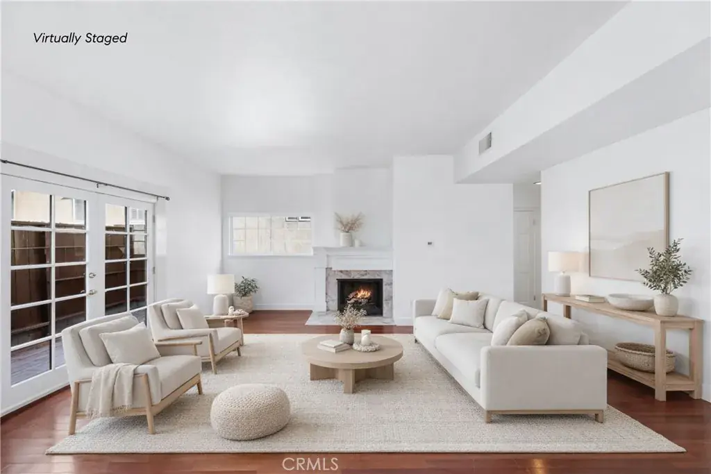 Quietly situated as a rear-unit townhome, 1515 Artesia Blvd Unit #2 is a charming retreat. Upon entry, the home is bathed in natural light and features hardwood floors throughout. The living room includes a fireplace and French doors that open to a private outdoor patio, creating indoor-outdoor flow. Just two steps up, the dining area features a second set of French doors leading to a private terrace and connecting to the adjacent kitchen, which offers ample storage and breakfast bar seating. A powder room and direct access to the two-car garage complete the main level. Upstairs, both bedrooms feature en-suite bathrooms. The primary suite offers vaulted ceilings, a private outdoor terrace, generous natural light, a large walk-in closet, and an en-suite bathroom with a glass-enclosed shower. The secondary bedroom features high ceilings, an en-suite bathroom, and ample storage. An upstairs laundry room with built-in storage and a skylight providing additional natural light completes the upper level. With easy access to downtown Manhattan Beach shops and dining, as well as LAX and major freeways just minutes away, 1515 Artesia Blvd Unit #2 presents convenience, charm, and everyday livability.