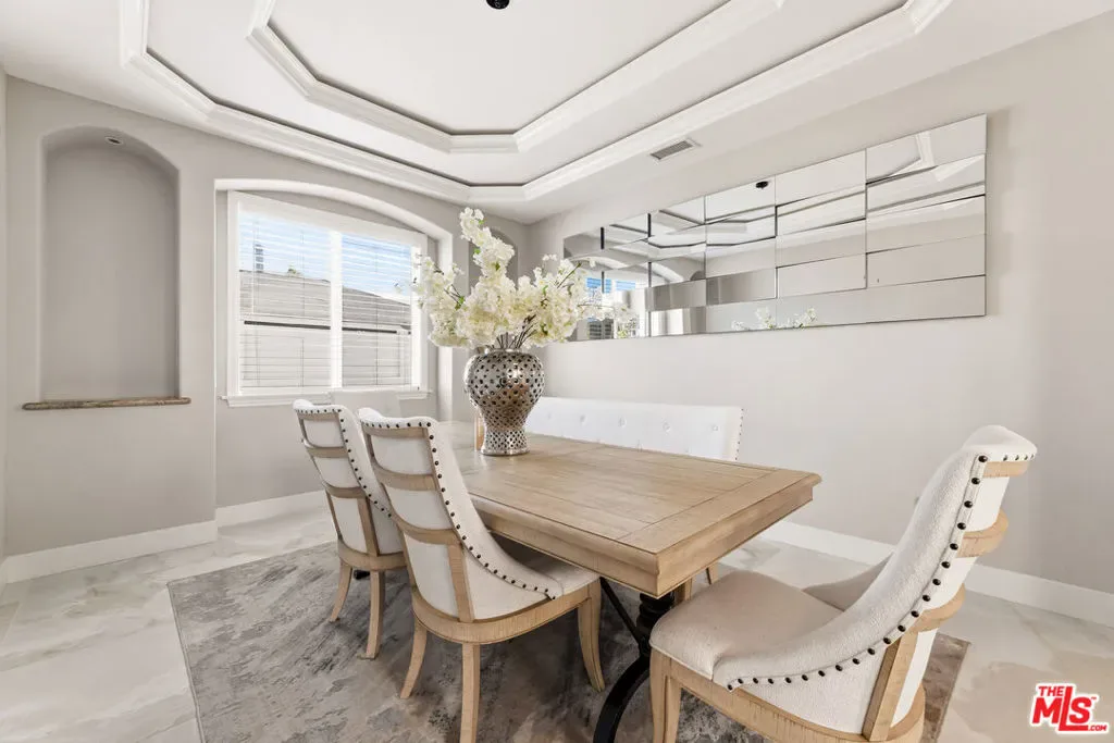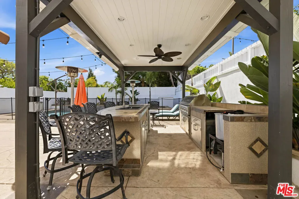 This refined 5-bedroom, 5-bath residence offers over 3,700 square feet of elevated coastal living. Sunlit interiors feature soaring ceilings and floor-to-ceiling windows, with a seamless flow from formal living and dining spaces to a beautifully appointed kitchen and inviting family room with coffered ceilings.Designed for effortless indoor-outdoor living, the expansive backyard showcases a resort-style saltwater pool and spa, outdoor kitchen, and fireplace ideal for both intimate moments and elegant entertaining.Each bedroom offers en suite access, while the grand primary suite is a true retreat with a fireplace, private balcony overlooking the pool, and an oversized walk-in closet.Ideally located just minutes from downtown Manhattan Beach, this home blends luxury, comfort, and the essence of coastal sophistication.