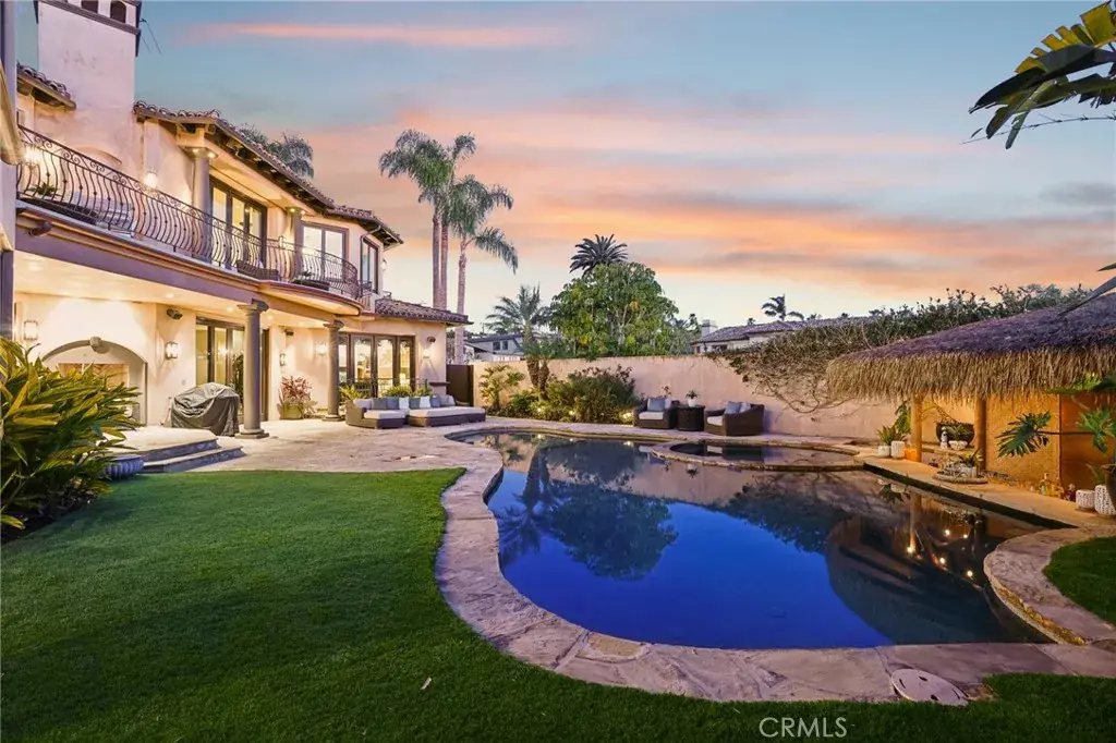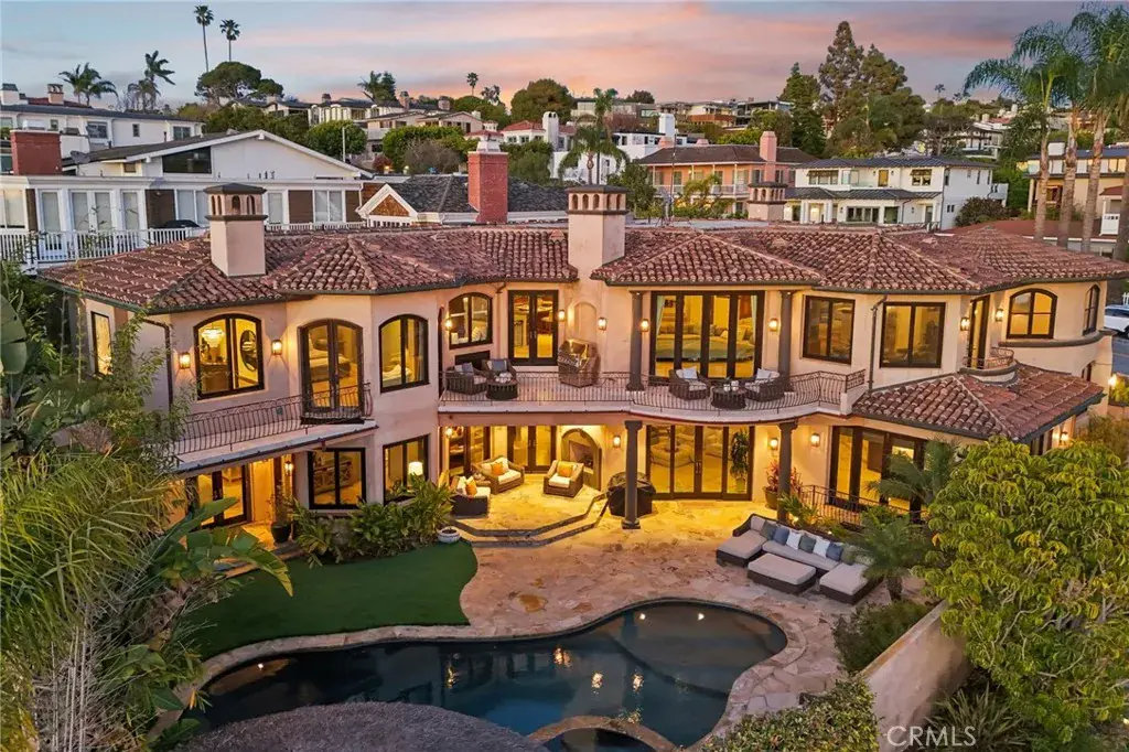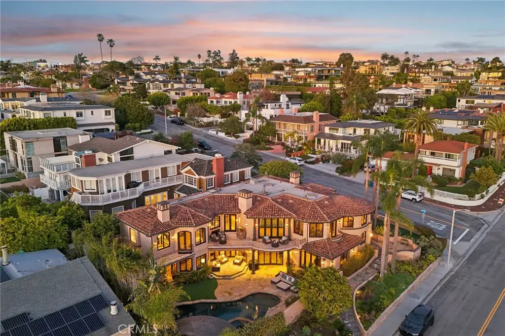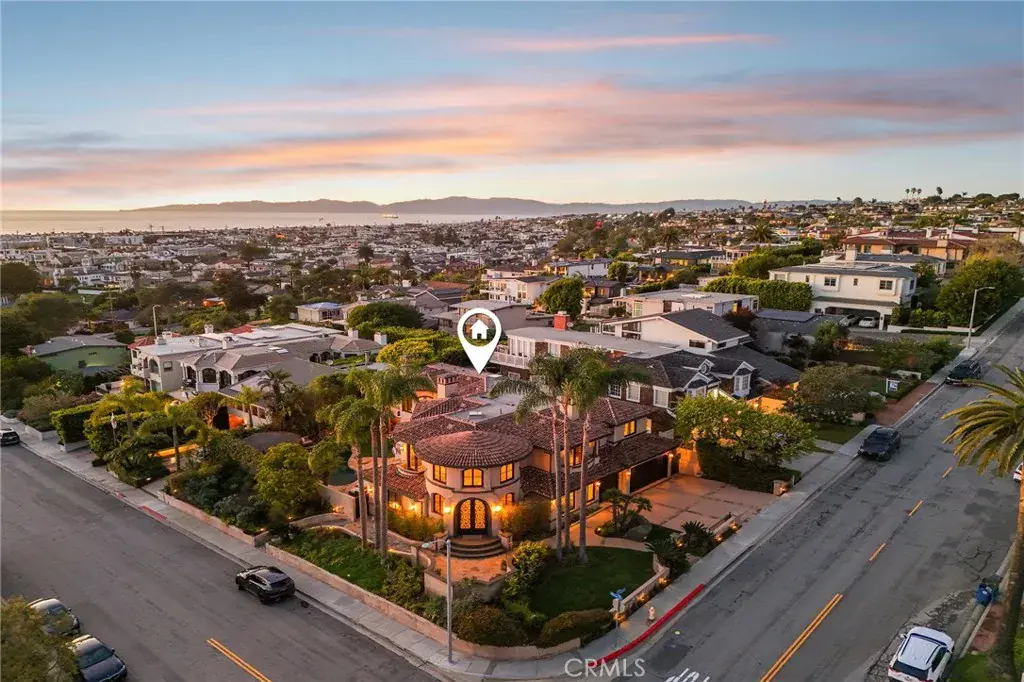High above the street in the iconic Hill Section of Manhattan Beach, this Southwest-facing corner estate feels like its own private resort—where ocean breezes drift in, sunlight pours through soaring ceilings, and every level delivers a new experience. In a city where space, privacy, and ocean vistas are hard to come by, the Hill Section is one of the few neighborhoods that offers all three—along with a short stroll to the beach, easy access to downtown, and walking distance to award-winning Robinson Elementary. Step inside on the main entry level and the drama begins: dual curved staircases, statement chandeliers, and fresh white oak floors that instantly lighten the mood. Five bedrooms (four ensuite) are thoughtfully positioned alongside a spacious family room and bonus flex space—ideal for homework marathons, movie nights, or a quiet work-from-home escape. Slide outside and you’re transported to a tropical oasis: pool, spa, swim-up bar, tiki hut with grass roof, outdoor fireplace, turf lawn, and bamboo-lined privacy that makes every day feel like a five-star getaway. Upstairs is where life unfolds in grand fashion. The living room opens to a balcony overlooking the lush backyard, while the gourmet kitchen—complete with Sub-Zero refrigeration, Dacor 6-burner range, double warming drawers, two Miele dishwashers, and an expansive granite island—anchors the home with effortless entertaining power. Double butler’s pantries and a built-in work area keep everything running smoothly. A warm library/study with fireplace invites slower moments, while the primary suite is a retreat unto itself: balcony access, dual-entry walk-in closet, soaking tub, dual vanities, and a spa-style shower designed to start and end your days right. Then there’s the level no one sees coming. Take the elevator down and you’ll find a moody, club-inspired escape reminiscent of the Foundation Room at House of Blues—ornate carved doors, ambient lighting, full bar, VIP lounge, theater room, and a vibe that says the night is just getting started. With over 9,000 square feet, six bedrooms, seven baths, multiple living areas, three-car garage, and seamless indoor-outdoor flow, this estate fully captures what makes the Hill Section so sought-after: room to spread out, privacy to unwind, and views that remind you why Manhattan Beach living is in a class of its own. It may feel like a faraway escape. Spoiler alert: it’s right here.