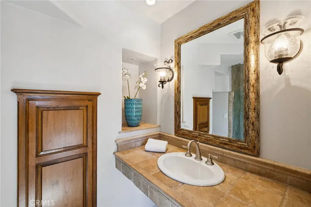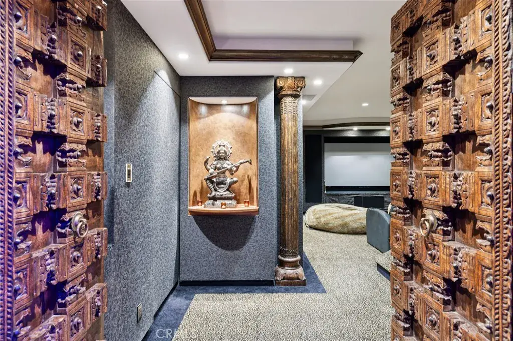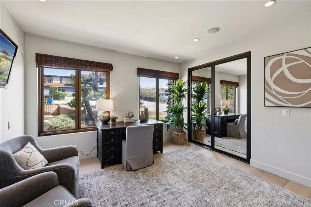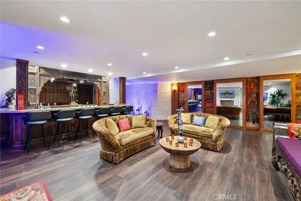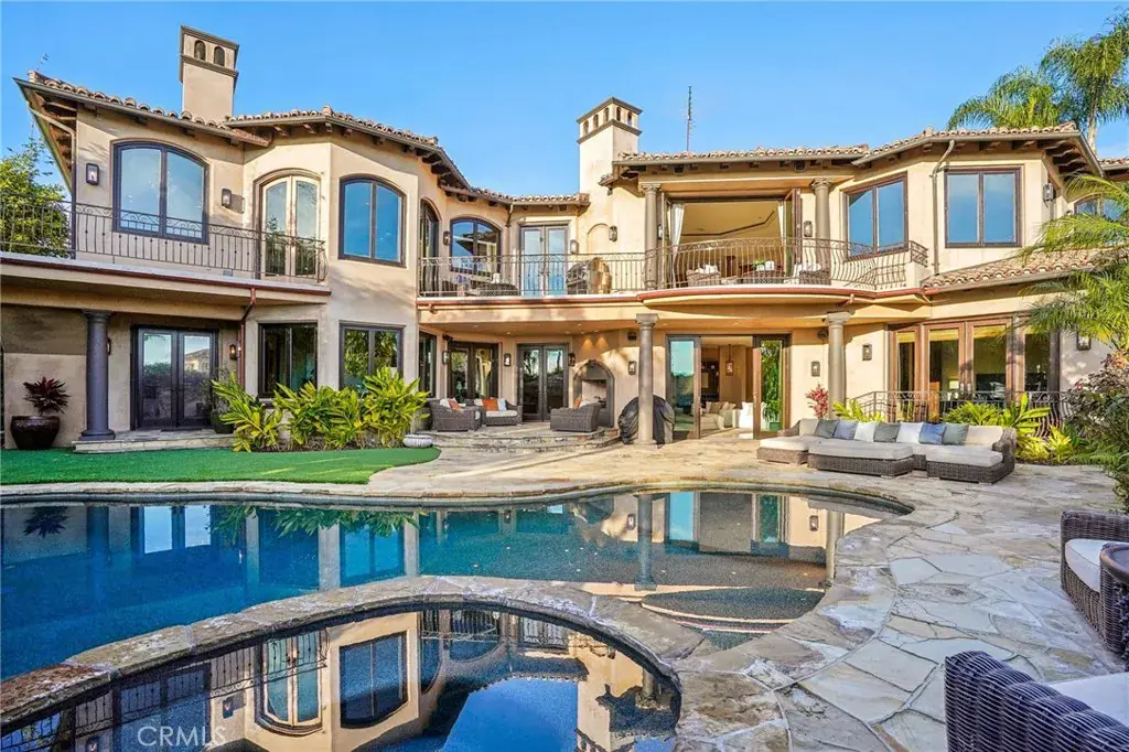 High above the street in the iconic Hill Section of Manhattan Beach, this Southwest-facing corner estate feels like its own private resort—where ocean breezes drift in, sunlight pours through soaring ceilings, and every level delivers a new experience. In a city where space, privacy, and ocean vistas are hard to come by, the Hill Section is one of the few neighborhoods that offers all three—along with a short stroll to the beach, easy access to downtown, and walking distance to award-winning Robinson Elementary. Step inside on the main entry level and the drama begins: dual curved staircases, statement chandeliers, and fresh white oak floors that instantly lighten the mood. Five bedrooms (four ensuite) are thoughtfully positioned alongside a spacious family room and bonus flex space—ideal for homework marathons, movie nights, or a quiet work-from-home escape. Slide outside and you’re transported to a tropical oasis: pool, spa, swim-up bar, tiki hut with grass roof, outdoor fireplace, turf lawn, and bamboo-lined privacy that makes every day feel like a five-star getaway. Upstairs is where life unfolds in grand fashion. The living room opens to a balcony overlooking the lush backyard, while the gourmet kitchen—complete with Sub-Zero refrigeration, Dacor 6-burner range, double warming drawers, two Miele dishwashers, and an expansive granite island—anchors the home with effortless entertaining power. Double butler’s pantries and a built-in work area keep everything running smoothly. A warm library/study with fireplace invites slower moments, while the primary suite is a retreat unto itself: balcony access, dual-entry walk-in closet, soaking tub, dual vanities, and a spa-style shower designed to start and end your days right. Then there’s the level no one sees coming. Take the elevator down and you’ll find a moody, club-inspired escape reminiscent of the Foundation Room at House of Blues—ornate carved doors, ambient lighting, full bar, VIP lounge, theater room, and a vibe that says the night is just getting started. With over 9,000 square feet, six bedrooms, seven baths, multiple living areas, three-car garage, and seamless indoor-outdoor flow, this estate fully captures what makes the Hill Section so sought-after: room to spread out, privacy to unwind, and views that remind you why Manhattan Beach living is in a class of its own. It may feel like a faraway escape. Spoiler alert: it’s right here.