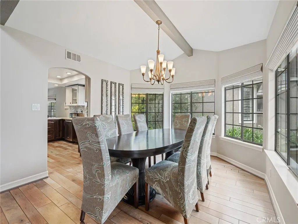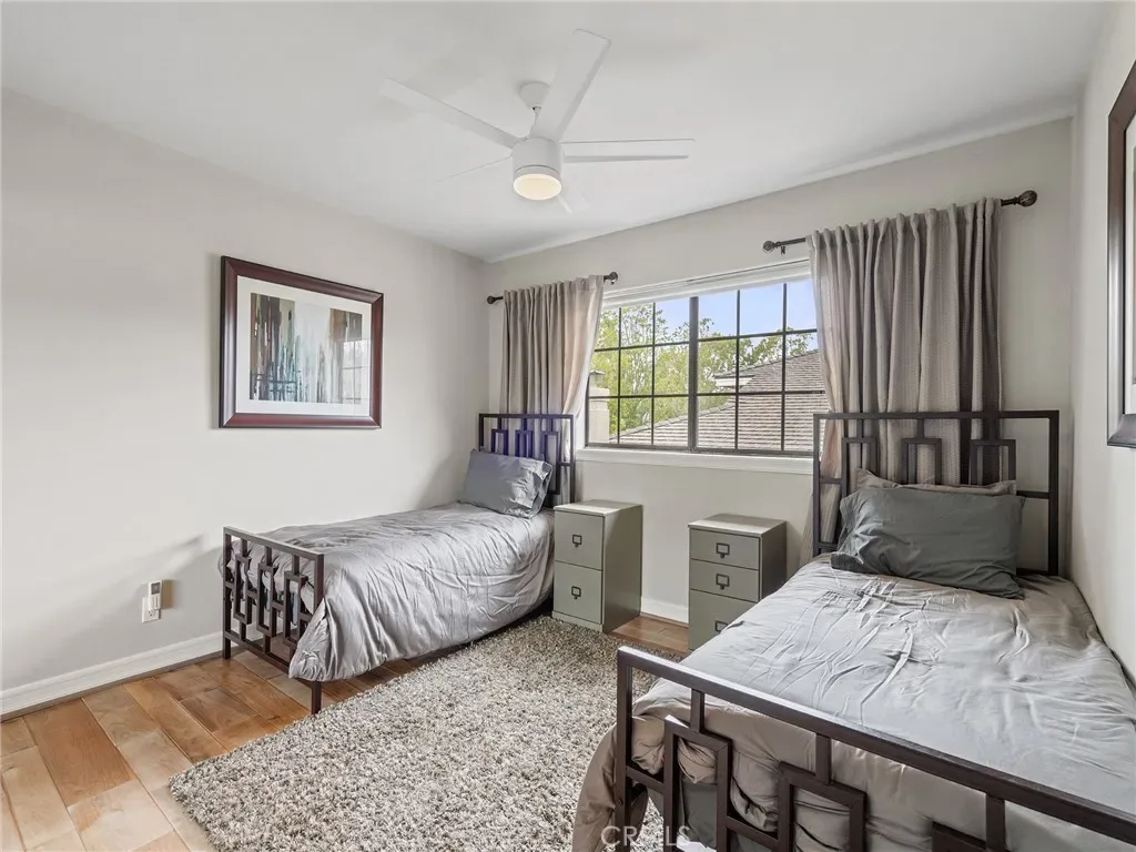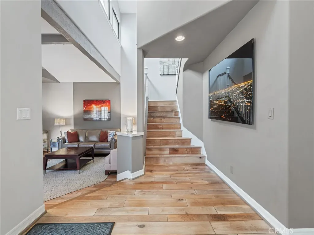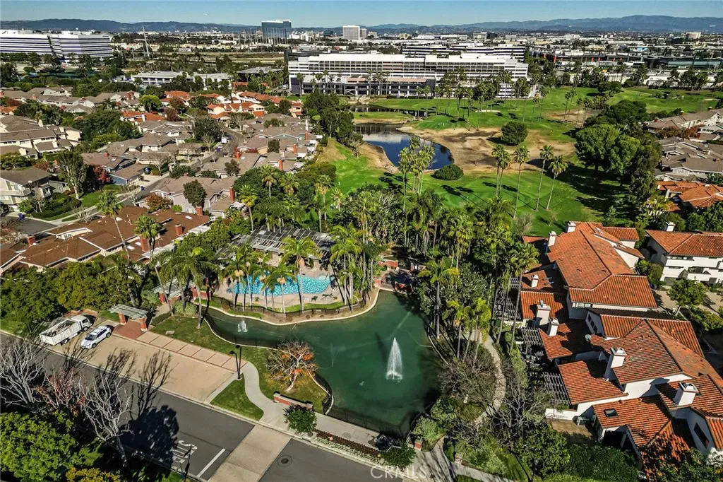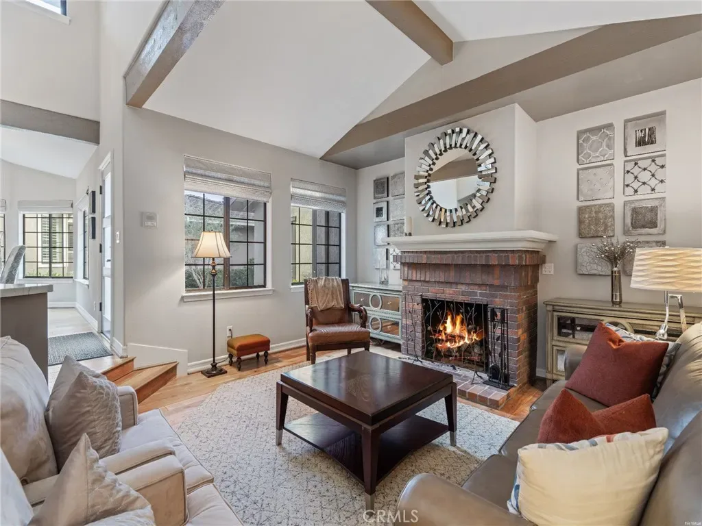 Ideally situated within the community of the Manhattan Village, this property is tucked away on a cul-de-sac with privacy. This highly sought after plan 8 townhome features a main floor primary suite with a walk-in closet, vaulted ceilings, and French doors leading out to the patio. The updated kitchen is equipped with a built-in 6-burner gas range, wine fridge, and a large breakfast bar open to the family room. A built-in desk and additional cabinet space complement the kitchen in modern design. A moody living room with fireplace, a large sunlit dining room and guest bathroom complete the first floor. The second level features two bedrooms and a bathroom plus a loft with a built-in workspace overlooking the first floor with second level windows that have views of the lush neighborhood. With only one shared wall, there is an abundance of windows surrounded with greenery and there is newly installed central air conditioning. The two-car garage is has an epoxy finish with washer and dryer included. Convenient guest parking is abundant on Nantucket and it has an easy walking path to the community pool, numerous spas, and well-lit and paved sidewalks. The 24 hour security includes the front gate guard, two additional residents only gates (including one at the Village mall entrance) and an overnight roaming guard.
