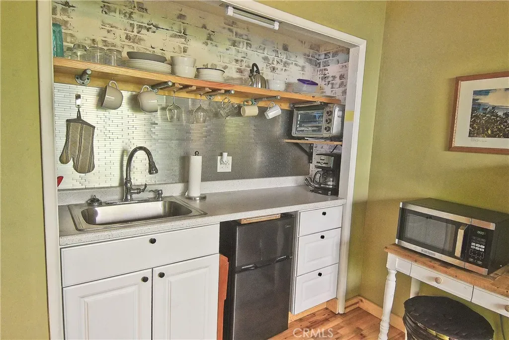 Looking for a tranquil, inviting, cozy place to call home that is just a 5 minute walk to the beach? Look no further. This charming, immaculate fully furnished unit is located at the back of the owner’s residence, offering privacy and one’s own outdoor patio. The living room has its original hardwood floors (with rug), raised wood ceiling, and with the glass sliding doors, the room is filled with light and greenery from the outdoors. The bedroom also feels spacious and light, has A/C split cooling, has a louvered door closet (approx. 5 ft wide) and ensuite bathroom with shower. The unit has a kitchenette equipped with a microwave, toaster/oven, hot plate, coffee maker, refrigerator AND a mini-fridge, dishes, glasses/cups, pots, pans and utensils. It does not have a dishwasher nor garbage disposal. There is a TV in the living room and in the bedroom. The lease includes all utilities, Wifi, internet and Roku TV. Washer and Dryer are in the garage (shared with owner). Street parking only. One truly feels at home in this serene and spotless home. And the beach, shops, restaurants, are all just a short walk away. Available for immediate occupancy.