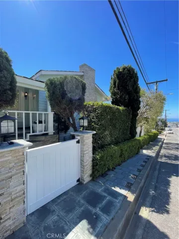 Rare opportunity to live in a classic Ocean View Beach House at the top of the Hill Section. Beautifully updated with custom finishes throughout, including walnut hardwood floors, french doors, gourmet kitchen with Calcutta marble, SubZero and Viking appliances. Formal living room with fireplace, dining room, eat-in kitchen with marble counter top, flexible den or play area family/media room, wet bar, laundry room w/LG appliances, finished two (2) car garage with built-ins. Fully landscaped and gated sprawling front yard with large Magnolia tree for shade, and a sunny west-facing back yard with grey slate hardscape, large grassy yard and mature landscape/fruit trees for great privacy and family/social use. Ocean views from the private primary bedroom deck as well as an enormous west-facing main floor deck for spectacular sunsets and comfortable indoor/outdoor living. Central Heat/Air Conditioning. Internet, media, security systems ready. A short walk to coveted award winning Robinson Elementary School, the beach & Strand, downtown shops & restaurants, and the Manhattan Beach Pier!