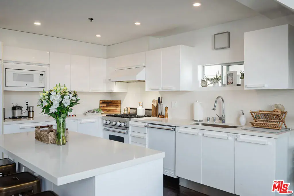 This modern loft in the heart of the Marina Arts District blends style and functionality with stunning design elements throughout. As you enter, you’re greeted by a bright foyer and an abundance of natural light pouring through expansive, north-facing floor-to-ceiling windows. The open layout spans two levels with soaring ceilings, sleek finishes, and distinct areas for living, working, and entertaining. Dark hardwood floors provide a striking contrast to the clean white walls and polished chrome accents. The chef’s kitchen is perfect for entertaining, featuring contemporary countertops, cabinetry, and high-end appliances. Upstairs, you’ll find a spacious primary suite with its own bathroom for added convenience. The living room opens up to a balcony that overlooks the vibrant street below, offering a private outdoor retreat. The home includes two potential bedroom spaces, or a combination of a primary bedroom and a den/office, plus two full bathrooms. Located in a highly sought-after area, you’re just moments away from the best of Marina del Rey – restaurants, shops, beaches, and easy access to Abbot Kinney, freeways, and more!