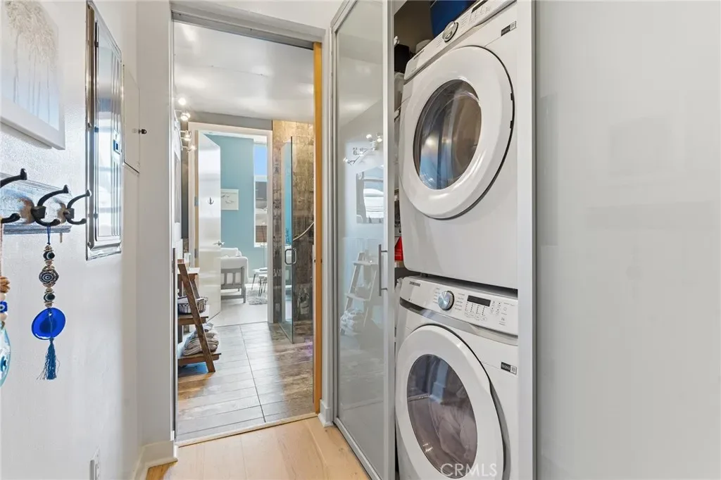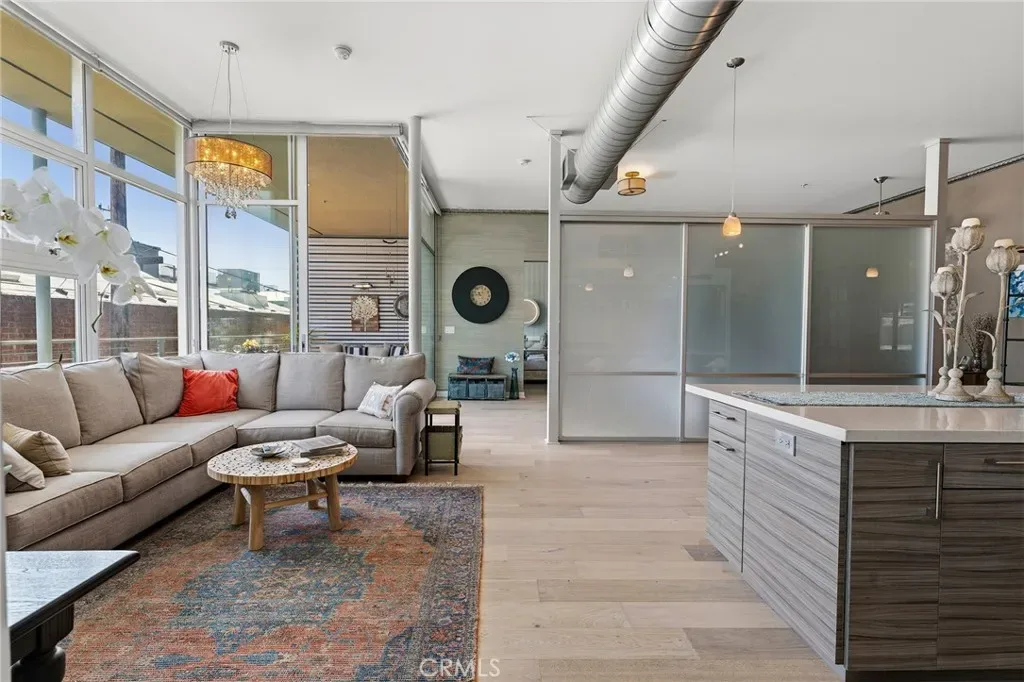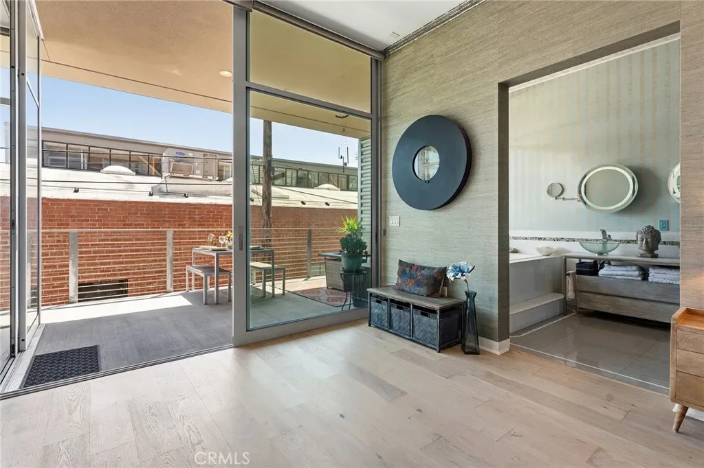 Discover refined coastal living in this one-of-a-kind Gallery Loft in the vibrant Marina Arts District. Thoughtfully reimagined by a local art gallery owner, this bright, beautifully customized loft reflects intentional design, elevated finishes, and standout style. Dramatic 11-foot floor-to-ceiling windows and a coveted south-facing orientation flood the space with natural light. Fleetwood sliding glass doors create a seamless indoor-outdoor flow to an expansive private deck, perfect for enjoying cool breezes or entertaining in style. The flexible open floor plan offers an ideal balance between a serene retreat and a vibrant gathering space. At the center of the home, the chef’s kitchen is both functional and striking. It features stainless steel appliances, a Bertazzoni range, refinished bamboo cabinetry, and a custom oversized island with a breakfast bar – perfect for casual dining. The primary suite is a true sanctuary, complete with a spa-inspired bathroom featuring quartz stone finishes, elegant wallpaper, a soaking tub, and a luxurious steam shower. A double vanity with abundant storage and a walk-in closet with a custom Elfa system complete the space. The second bedroom, currently styled as a home office, offers its own en-suite bath with hand-painted tile and a European-inspired shower. Additional highlights include double-paned, near-soundproof glass, custom Hunter Douglas shades for privacy and light control, two assigned tandem parking spaces, and ample guest parking with EV charging stations. Gallery Lofts is a secure, controlled-access community offering a beautifully landscaped courtyard, an outdoor kitchen, a BBQ area, and inviting lounge spaces with fire pit seating, perfect for relaxing or connecting with neighbors. You’re just moments from Marina Marketplace, top restaurants, cafés, boutiques shopping, Abbot Kinney, scenic bike paths, and the beach, plus only minutes to LAX. This is a rare opportunity to live in a design-forward, light-filled loft that beautifully blends an urban lifestyle with a relaxed, beach-inspired atmosphere.