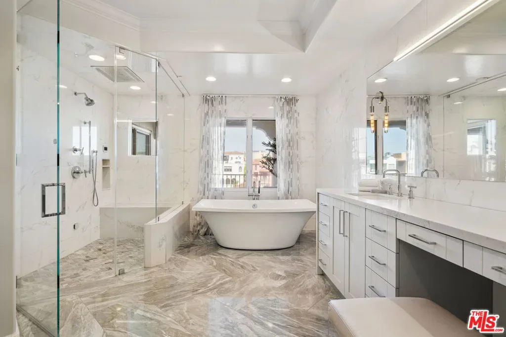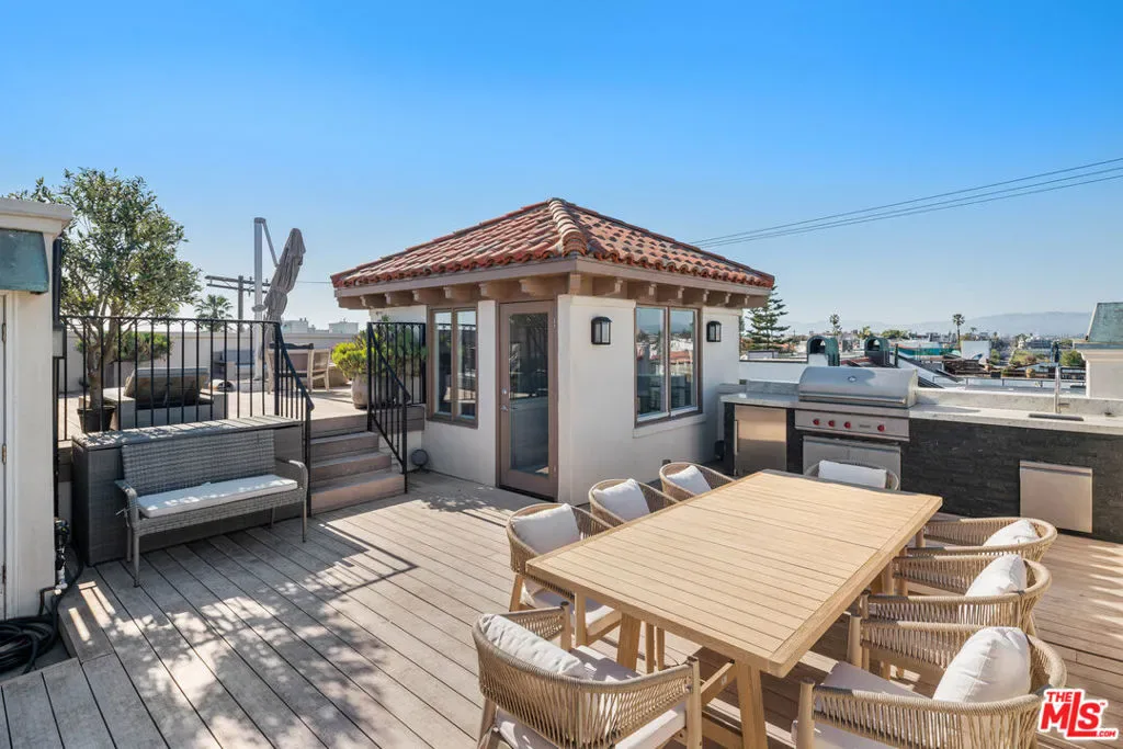 Experience the ultimate waterfront lifestyle on the Grand Canal. Perfectly positioned on the exclusive Marina Peninsula just steps from the sand and minutes from the heartbeat of Silicon Beach this recently reimagined Mediterranean estate sits on a rare corner lot, offering the pinnacle of turnkey, designer luxury. The light-filled interior is anchored by an elegant chef’s kitchen, meticulously curated with Wolf and Sub-Zero systems and bespoke cabinetry set against exquisite stone surfaces. High-ceiling formal living and dining rooms provide a grand stage for entertaining overlooking the water, while a cozy adjacent family room offers a more intimate space for relaxation. The private quarters are equally impressive. The primary suite is a masterclass in design, featuring a fireplace, dual custom-fit closets, and a tranquil ensuite patio with direct canal views. The spa-like primary bath is a true showpiece, featuring gorgeous stone work and a glass-enclosed shower with a steam system. Two additional bedrooms with its own balcony reside on the same level, while the lower level serves as a versatile retreat with a guest suite, powder room, laundry area, a dedicated office, and a media room that opens directly to an oversized private patio. The crown jewel of this home is its seamless indoor-outdoor flow, boasting multiple distinct alfresco spaces. Whether hosting on the tranquil main-level deck overlooking the Grand Canal or ascending to the massive rooftop terrace complete with a full outdoor kitchen, dining area and lounge, you are surrounded by panoramic vistas of the canal and the Pacific. Timeless, sophisticated, and perfectly situated, this home defines the modern California dream.