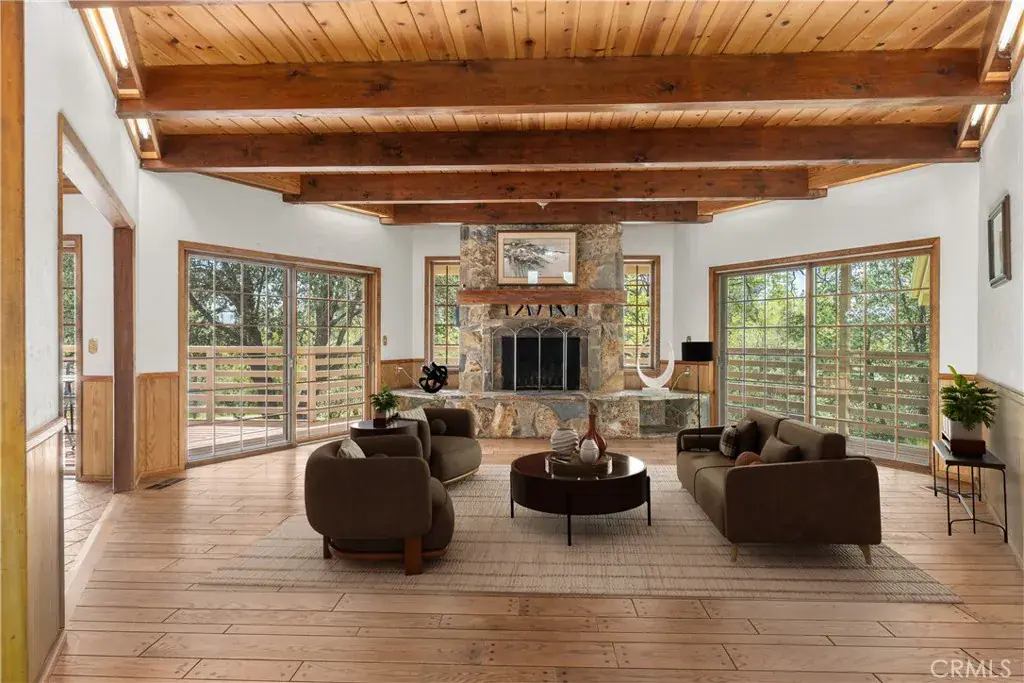 This outstanding custom built home has so many unique qualities and beauty, it is a must-see mountain gem. Bosting over 3,000 sf of living space on over 10 acres that runs into the Lush Meadows pond, Dawn Lake (but is outside of the association). Circular driveway, double door entry & gorgeous mountain views from all around. Large 4 stall horse barn that could alternately be the perfect game room if you’re planning on making this a short-term rental (home is ADA compliant & turn-key for a primary residence, vacation home or STR), fenced garden area, horse arena & fenced dog run. This home radiates quality & craftmanship with a large master suite featuring vaulted beamed ceilings with tongue & groove, wood stove, his & her sinks & closets with access to the indoor pool & spa from every bedroom. Jetted guest tub, large walk-in pantry, formal dining, grand Livingroom with a statement rock fireplace & decks for summer nights & entertaining. There is a studio with sink & fridge hookup + more closet space, this could be the perfect office or another bedroom with a wood stove and its own entrance. Downstairs from the kitchen is the library/bedroom/family room/office with a bathroom and its own cozy rock fireplace. This is your mountain retreat, close to Yosemite, the beautiful town of Mariposa or a short drive to Oakhurst for your conveniences. Hiking, biking, paddleboarding, kayaking, fishing… it’s right outside your door.