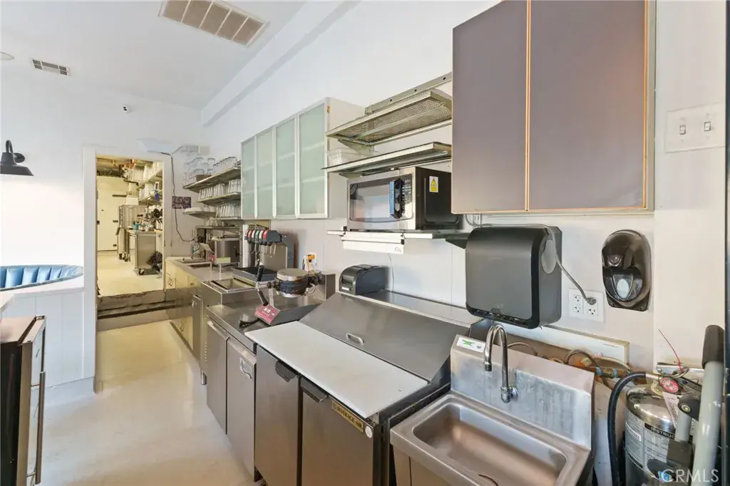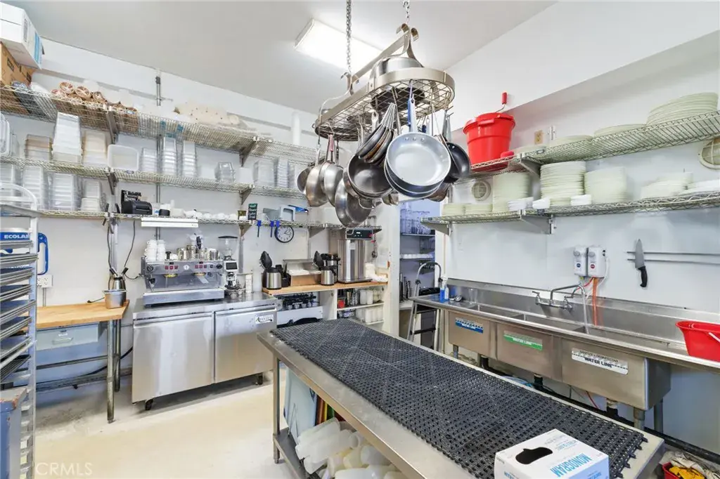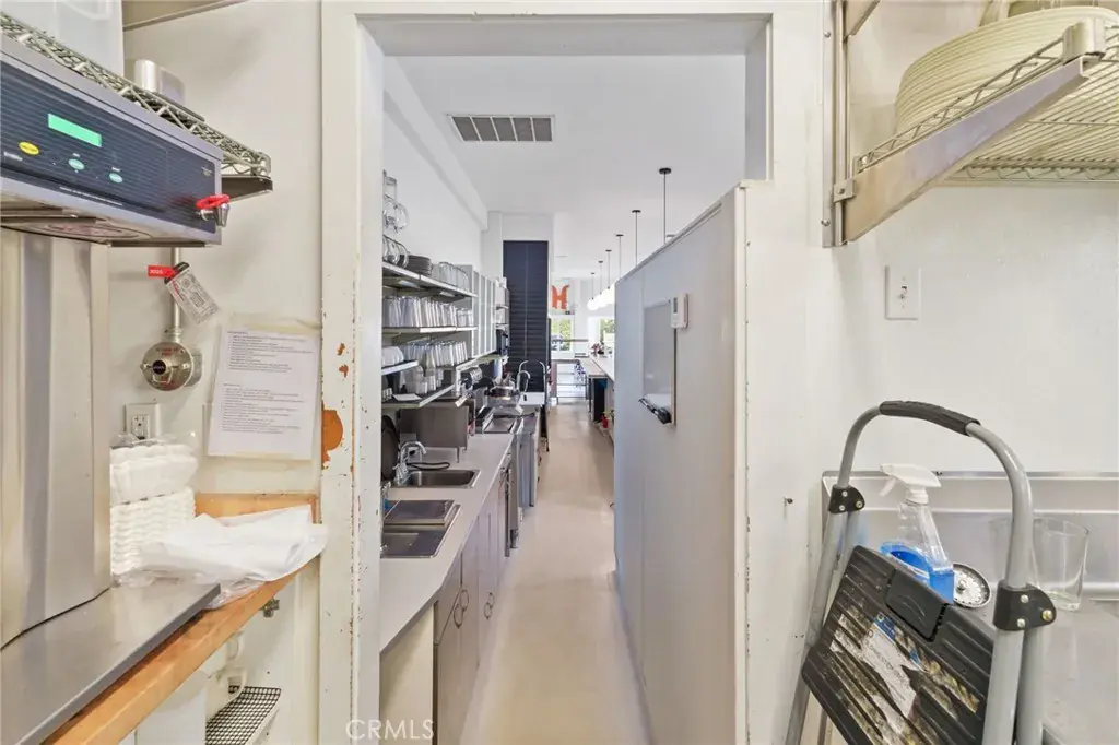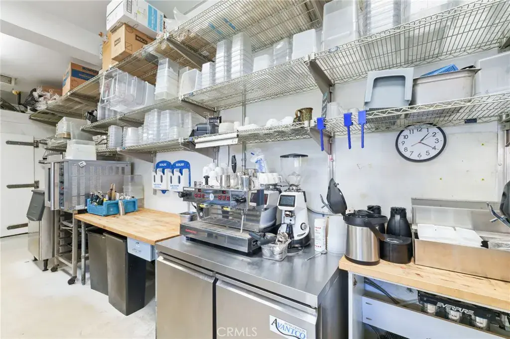 REFURBISHED and updated walk-in refrigerator/freezer, all new floors, custom shelving, ice machine, hand sink, cooling