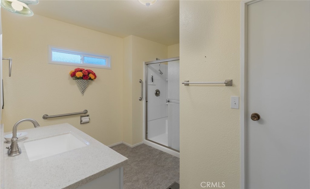 Enjoy a fully renovated kitchen with newer appliances, along with tastefully updated bathrooms featuring low-step walk-in showers for convenience and accessibility.