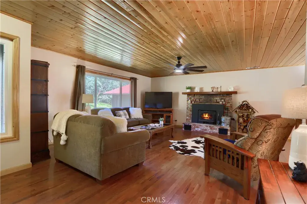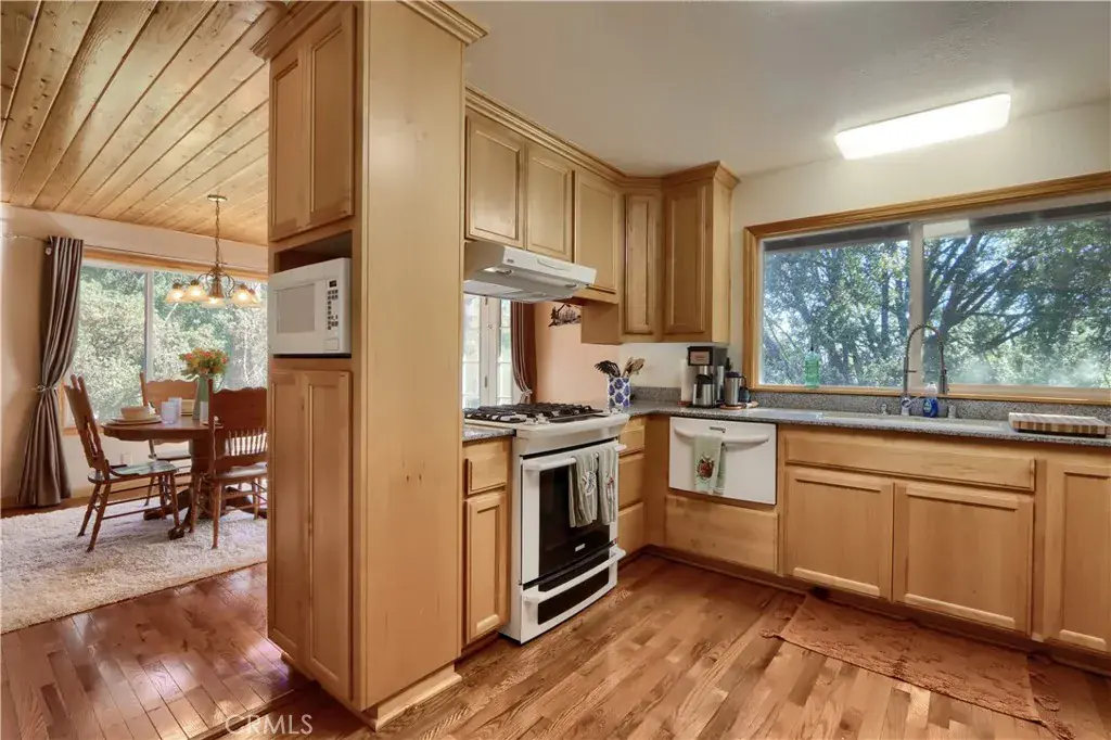 Step into your custom mountain home on 1.5± acres featuring gentle to rolling terrain and sweeping views of the Sierra Nevada, dotted with pine and oak trees. Located on a paved corner lot in the desirable Lushmeadows Mountain Estates. This 3-bedroom, 2-bath, 1,546 sq ft home offers knotty pine ceilings throughout, hardwood floors, and a wood-burning fireplace insert in the living room. The dining room opens to an outdoor patio deck through French doors—perfect for indoor-outdoor living. The custom kitchen includes handcrafted cabinetry, gas cooktop and oven, dishwasher, microwave, pantry, and a large window that fills the space with natural light. The guest bathroom features a spacious walk-in shower, ceramic tile flooring, and custom cabinetry with ample storage. Both guest bedrooms offer hardwood flooring and large windows. The primary suite features hardwood floors, a walk-in closet, and peaceful southern views where deer are often seen. The primary bath showcases wood siding and a large walk-in shower. Additional features include a metal roof, 2-car attached garage, 3-car detached garage/workshop with garage door opener, workshed, and paved driveway. As part of Lushmeadows Mountain Estates, enjoy access to two private lakes (Dawn & Mallard), clubhouse, and campground, with opportunities for fishing, kayaking, hiking, and enjoying the serenity of mountain living. Ideally located approximately 40 minutes from Yosemite National Park, Bass Lake, Lake McClure, and Lake Don Pedro. Perfect as a full-time residence, vacation retreat, or work-from-natures escape. Schedule your home tour today!