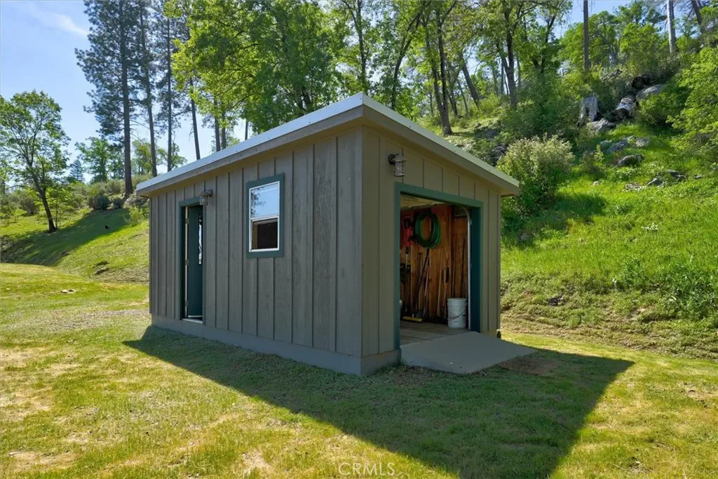 Practical features abound, including a 220-foot deep well currently producing 20 gallons per minute, a 2,500-gallon water storage tank, and a 3,000-gallon fire protection tank with CalFIRE hose fitting. A two-car garage plus an additional small garage house perfect for storing a tractor, or ATV’s, and/or other tools, for exceptional mountain living.