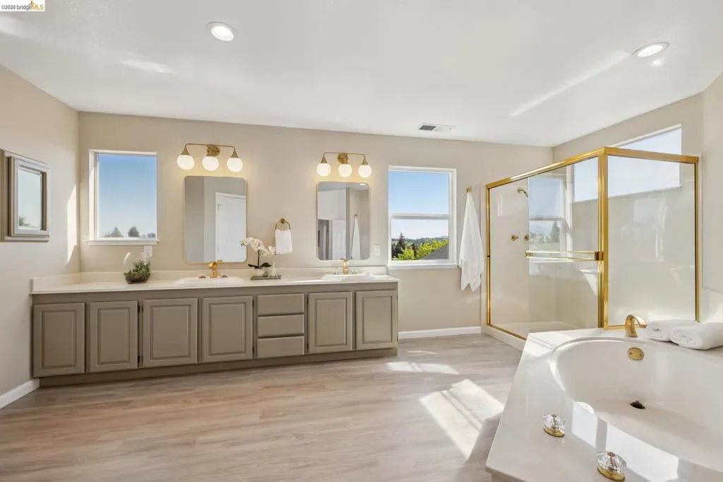 Set on a quiet court in one of Martinez’s established hillside neighborhoods, this spacious 4-bedroom, 2.5-bath home offers over 2,400* sq ft of flexible living with a south-facing patio, Mt. Diablo views, and central AC. Refreshed with full interior and exterior paint, the home feels clean and move-in ready while offering room to personalize over time. A grand entryway opens to soaring ceilings that create an immediate sense of volume and natural light. Multiple living areas provide space for both gathering and everyday comfort, while the traditional floor plan offers a natural flow between rooms. The eat-in kitchen anchors the home and connects to the family room with a shared gas two-way fireplace, creating a warm and functional central living space. An oversized two-car garage adds everyday convenience. Upstairs, four well-sized bedrooms offer versatility. The primary suite features a generous walk-in closet and a well-appointed bath, complete with a gas two-way fireplace that adds warmth and character. Minutes from downtown Martinez, enjoy local restaurants, coffee shops, parks, and shoreline trails. HWY 4 access is just a block away, connecting you to Pleasant Hill, Walnut Creek, and beyond. A rare combination of space, comfort, and location, ready for its next chapter.