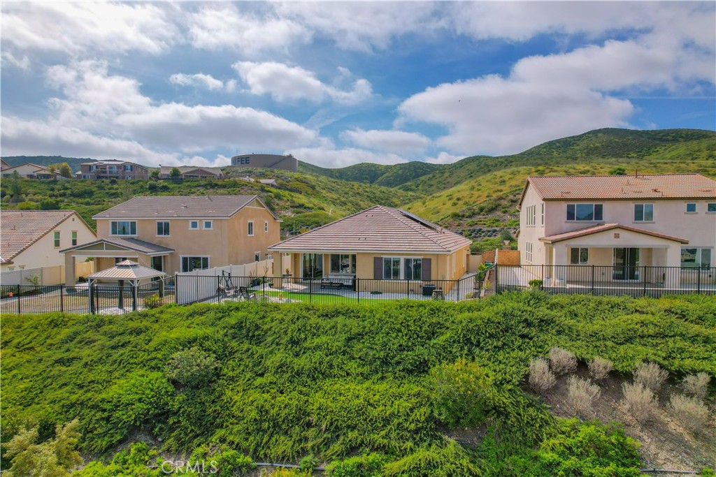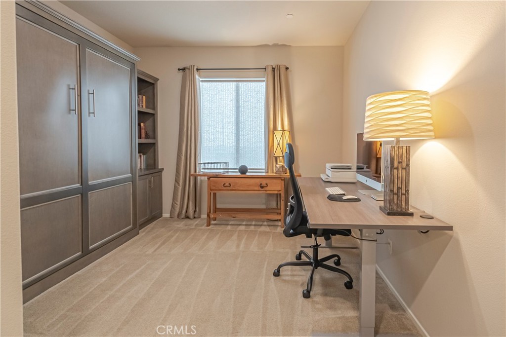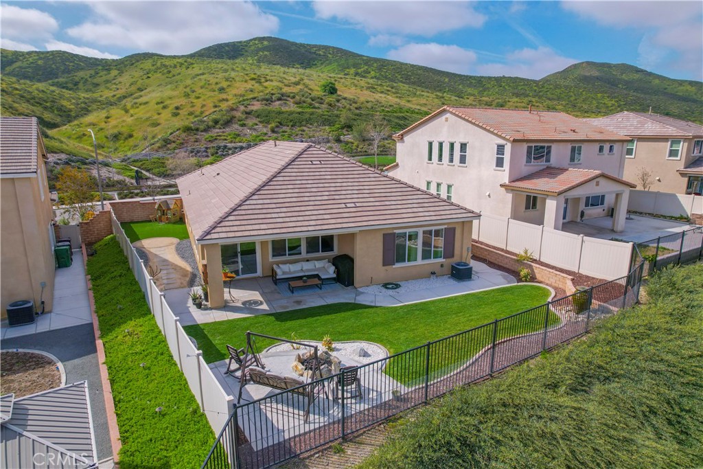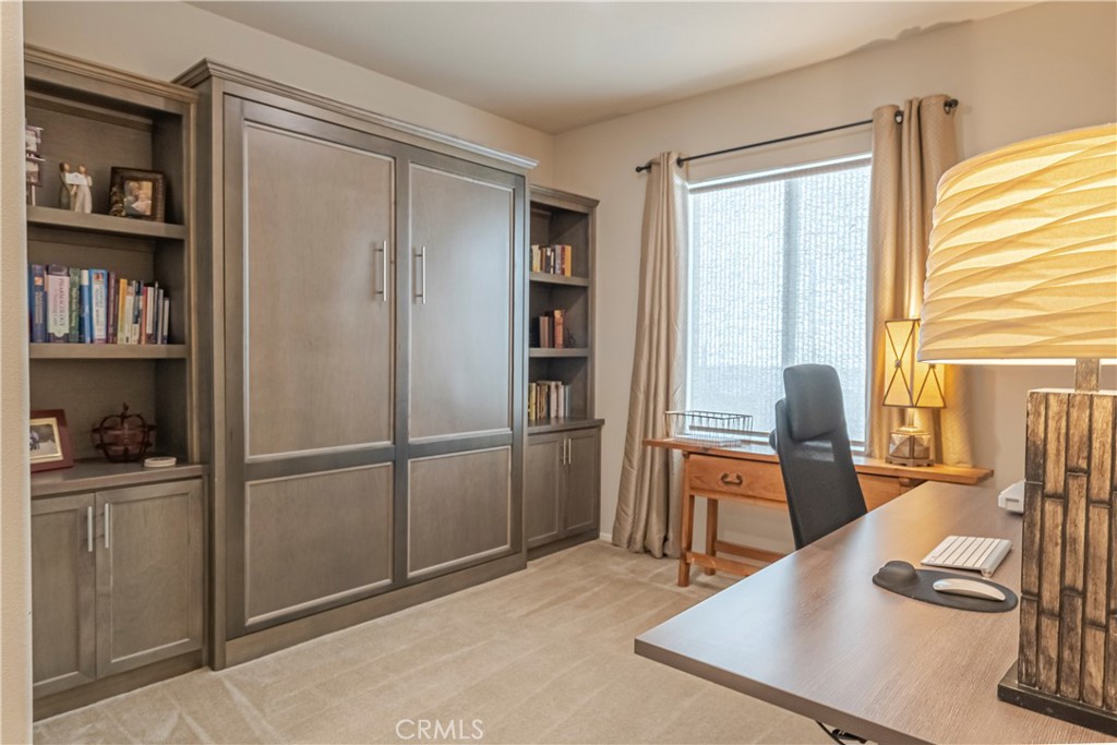 VIEWS…VIEWS…..& MORE VIEWS!!! | SINGLE STORY | CUSTOM BUILT-INS | SPACIOUS GREAT ROOM | SINGLE LOADED STREET | 3 BED + OFFICE | PRIME LOCATION!! – Welcome to this beautifully spacious single story home with VIEWS that will be hard to match!! From the moment you arrive, the inviting curb appeal with custom hardscape sets the tone for a home that effortlessly blends comfort and style. Located on a single loaded street with more incredible views out front; walking trails and a lush park await your enjoyment right across the street. Inside you’ll experience an expansive 2,164 square-foot layout featuring abundant natural light and a gorgeous great-room that so many love. The kitchen serves as the heart of the home including a massive granite island with counter seating, stunning floor to ceiling cabinetry, ample counter space, lots of storage, stainless steel appliances and a huge walk-in pantry. This all flows seamlessly into the main living area with a dazzling custom built-in entertainment center with designer lighting. The home offers 3 generously sized bedrooms and an additional office space with a beautiful custom barn door and custom built-in murphy bed/shelving unit. The primary suite is designed as a private retreat with gorgeous spa like bath and more tantalizing views of the mountains beyond and city lights below. Step outside to a versatile backyard space perfectly suited for both peaceful relaxation and entertaining family & friends. Enjoy the shade of a well-placed California room, large concrete patio, extensive hardscape, spacious side yard with custom pavers and turfed play area. Situated in one of most sought-after communities in this whole valley, Audie Murphy offers endless fun and recreation with several parks, playgrounds, sports park, skate park, basketball courts, and tennis courts. The Ranch House community clubhouse pool area is a prized feature for Audie Murphy and a complete other community pool area just right down the dedicated trail right out the front door of this amazing residence. Enjoy incredibly convenient access to top-rated local schools, access to be the 15 & 215 freeways, premier shopping and dining destinations at the well acclaimed Menifee Town Center. With its blend of suburban serenity and everyday convenience, this property is a premier destination for those seeking a vibrant atmosphere to call home.