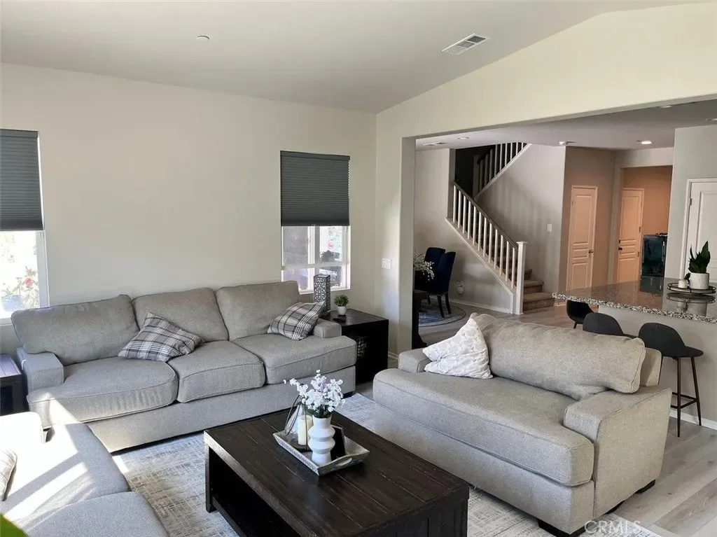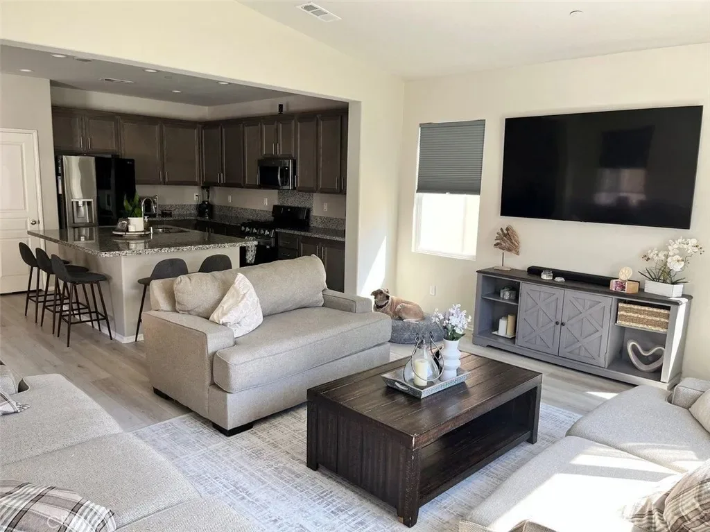 Wow! Wow! Wow! What a Nice Newer Home located in the highly sought out Family Community of Audie Murphy Ranch! Great Curb Appeal, Home has 4 Bedrooms / 2.5 Bathrooms, Large Family Kitchen with Large Island, Pantry, Granite Countertops, Stainless Steel Appliances, Recessed Lighting, Laminate Flooring on lower level, 1 Bedroom and 1 Bathroom Downstairs, Open Floor Plan to include Family Room, Kitchen & Dining Area, Carpet on Stairs and Bedrooms, Go upstairs to a Good Size Loft Area, being used as a Den or Office area, Large Master Bedroom with Large Master Bathroom, also Bedrooms 2 & 3 located upstairs, 1 Full Bathroom and also includes a Large Laundry Room with Cabinets, and Sink, Central Air/Heat, Enjoy the Gorgeous open Backyard with Grass Area, Planters, Covered Patio Area to enjoy those nice evenings with Friends and Family, Nicely Landscaped Front and Back with a lot of external lighting in planters, 3 Car Garage with 2 parking spots, 3rd area is being used a Gym/Storage, Direct Access into Home, Home has set up a 220 Volt EV Charger Outlet, EV Ready, Solar is on Lease, Close to Everything that Menifee Area has to Offer, Entertainment Centers, Shopping, Restaurants, Schools, Parks, Sport Park, Freeways and so much more…. Don’t miss out on this Home….