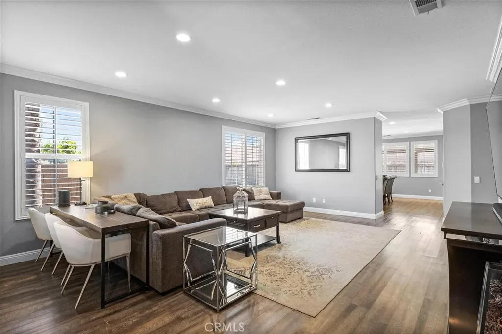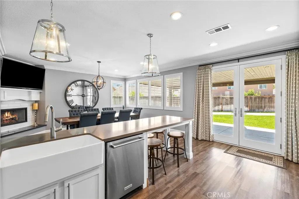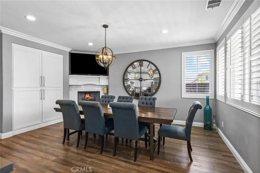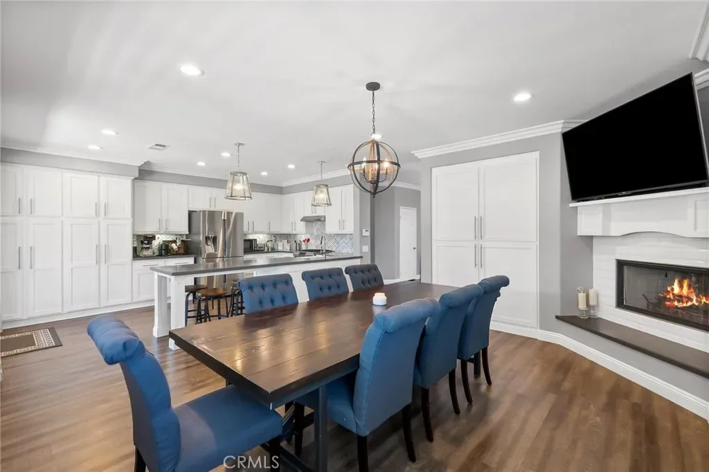 Step inside to a grand formal living and dining space that sets the tone for the home’s open, light-filled interior. The layout flows effortlessly into the main living area, where a stunning fireplace with custom woodwork and built-in cabinetry creates a true focal point—perfect for both entertaining and relaxing.
