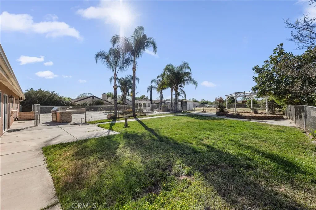 Opportunity awaits at this 4 bedroom traditional ranch in a desirable Menifee location. Situated on approximately 1 acre prestigious lot with a view of the hills. No HOA. This property has been owned by the same owner for many years. The exterior features private front gates with welcoming mature palm trees, multiple front, side & back patio areas and loads of yard area for gardening, RV access, storage area and open space and a fenced swimming pool and BBQ area with plenty of extra space to entertain and relax. The interior boasts an oversized formal living room and dining room area with a picture window. The family room includes a fireplace, and a large kitchen has plenty of pantry space and a breakfast bar. Four generously sized bedrooms and three bathrooms, an attached 3-car garage, and interior laundry room complete this spacious floor plan. The exterior has potential for extra storage space and this location has great access to freeways, shopping, restaurants and so much more. You’re sure to be pleased.