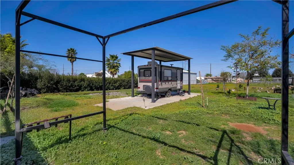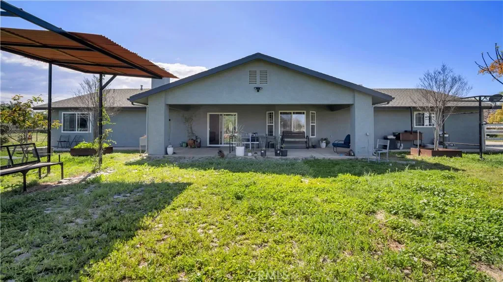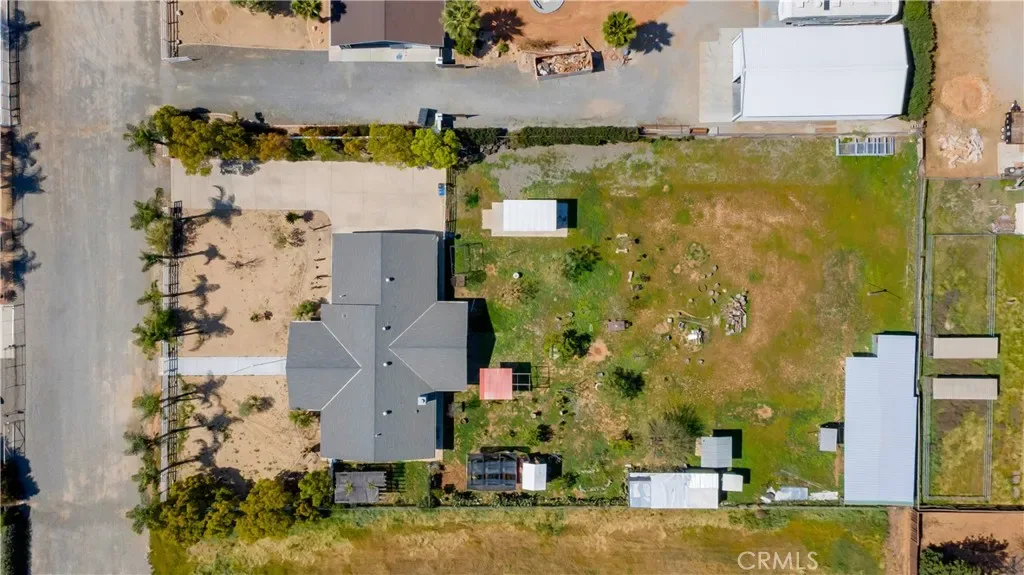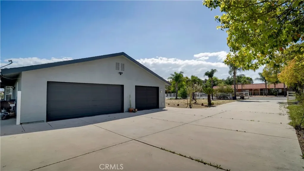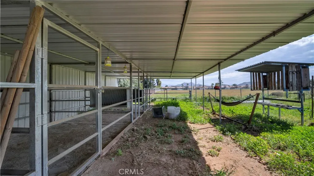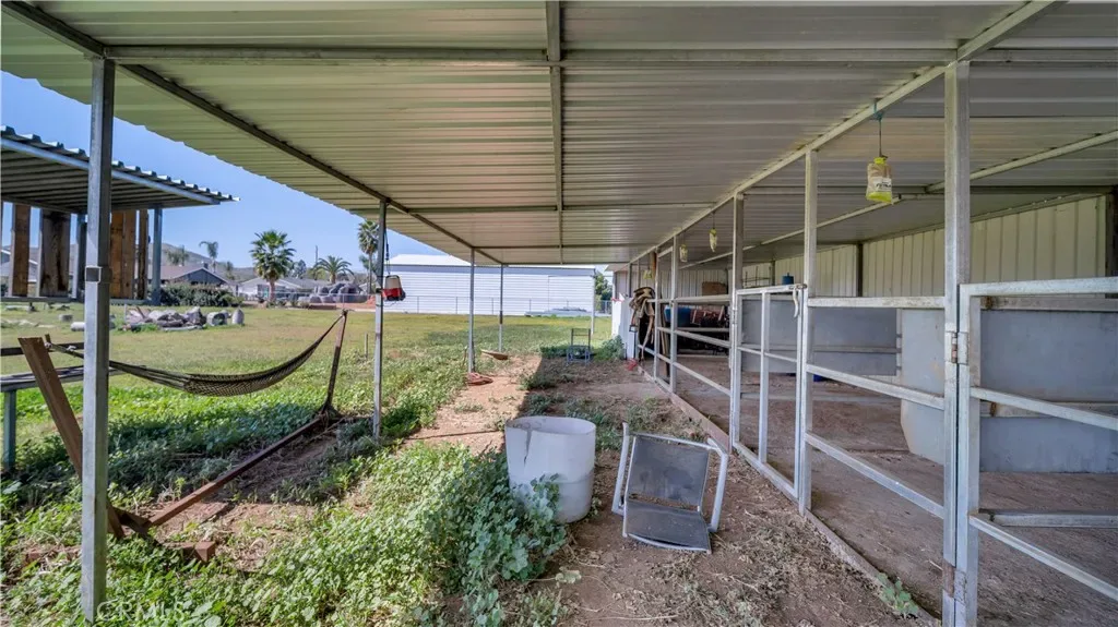 Step outside and enjoy the peaceful lifestyle this property offers. With over an acre of land, there is space for horses, RVs, recreational toys, and more. The property also features horse stables and chicken coops, making it ideal for those seeking a private ranch-style setting while still enjoying modern comforts.