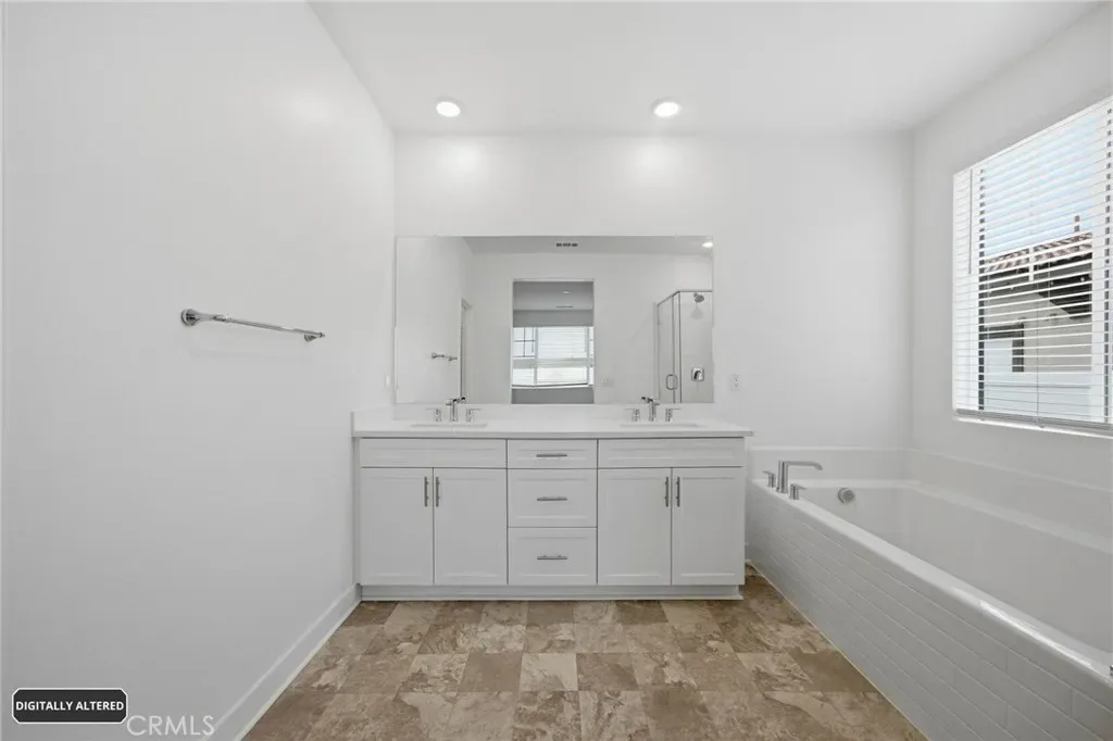 The primary suite offers a comfortable retreat with a walk-in closet, dual sinks, and a separate soaking tub and shower. Additional features include energy-efficient solar, EV charging capability, and modern finishes throughout.
