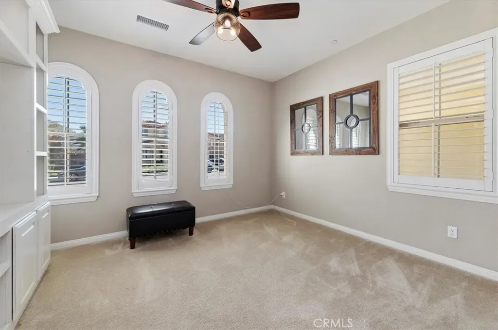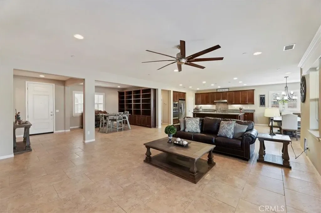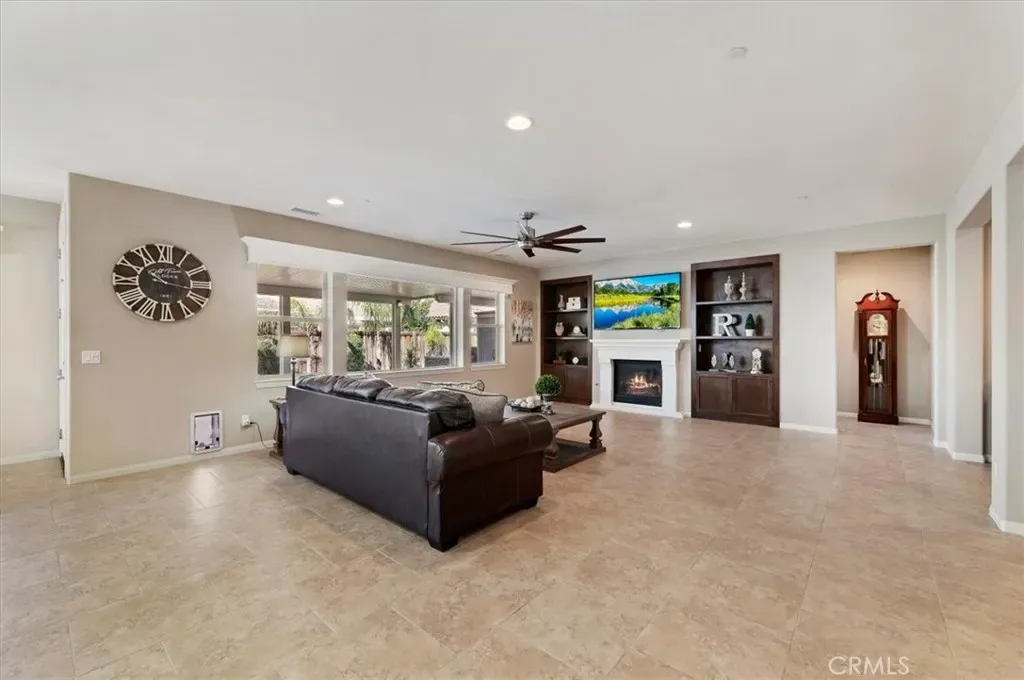 Stunning 4 Bedroom Home with Tandem 3-Car Garage and a Backyard Oasis!!! Welcome to this Menifee Heritage Lake beautifully maintained 4-bedroom, 3-bathroom home featuring approx. 2,785 sf of spacious living space, floor plan and a layout that offers a great flow throughout the home, making it perfect for both everyday living and entertaining. The interior offers tile flooring throughout the main living areas with comfortable carpet in the bedrooms, creating a balance of style and warmth. The heart of the home is the impressive kitchen with a large center island, ideal for gatherings and hosting. The kitchen also features a built-in oven and microwave and opens seamlessly into the dining and living spaces. The dining area includes custom built-in shelves, adding both charm and functionality. Ceiling fans are thoughtfully placed throughout the home for added comfort. The primary suite offers a relaxing retreat with a well-appointed bathroom that includes dual sinks and plenty of space. Step outside to a backyard that truly stands out — like your own private oasis. Enjoy the built-in BBQ, a beautiful aluminum wood-style patio cover, and plenty of stamped concrete, creating the perfect space for outdoor entertaining, relaxing, and hosting gatherings year-round. Additional highlights include a tandem 3-car garage providing ample room for vehicles, storage, or a workspace, along with a tankless water heater for modern efficiency and convenience. This home has so much to offer and is truly a beauty. A must-see property that combines comfort, space, and great entertaining areas both inside and out. Living in Heritage Lake means enjoying one of Menifee’s most desirable master-planned communities, featuring two junior Olympic-size swimming pools, a 25-acre lake with paddle boats, catch-and-release fishing, splash park, fitness trail, sports courts, clubhouse, and multiple community parks. Conveniently located near shopping, dining, schools, and freeway access, this home offers the perfect blend of comfort, functionality, and resort-style amenities.