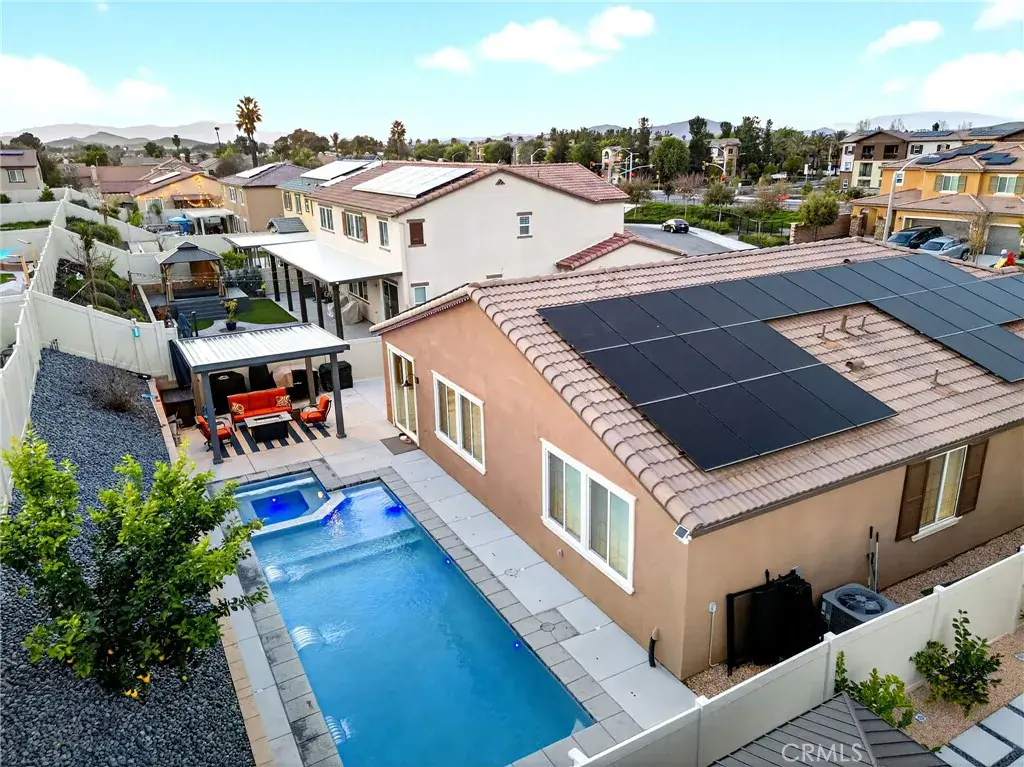 Perfectly upgraded and better than new, this 2022-built single-story pool home is ideally located in the heart of Menifee! Tucked away in a quiet cul-de-sac, this stunning residence offers beautiful curb appeal, a welcoming front porch, solar, and potential RV access!