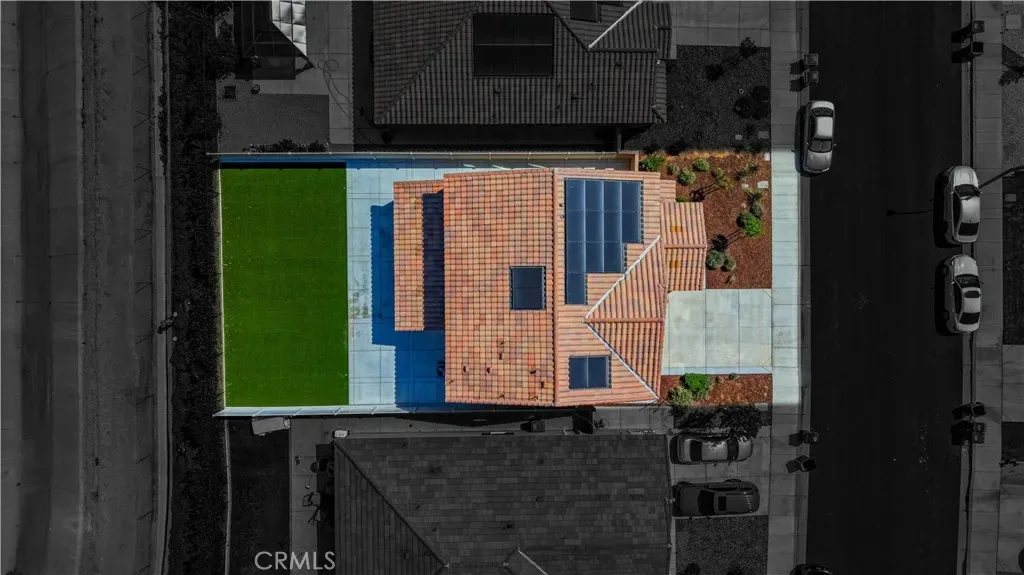 The finished backyard features an attached patio covering, premium turf, concrete hardscape, and a see-through rear fence with no close rear neighbors, offering a sense of openness while maintaining privacy. Designed for low maintenance and easy enjoyment.