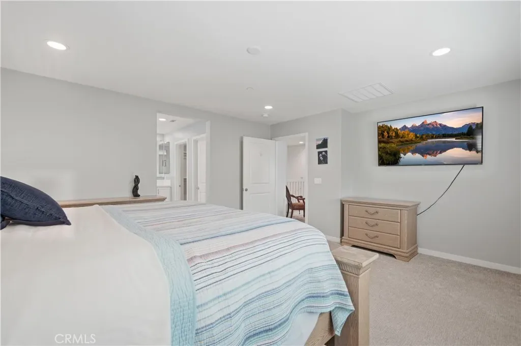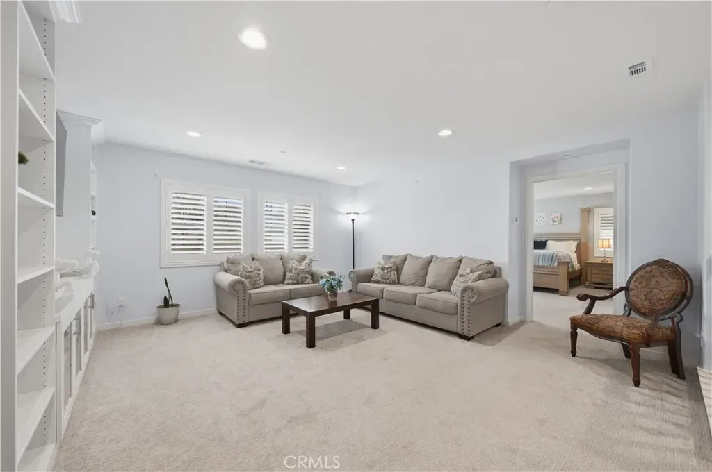 A great opportunity to own a well-appointed 2022 home in a quiet Menifee neighborhood with some great upgrades and ready for its next chapter. The spacious two-story layout offers 5 bedrooms and 3 bathrooms, with an open living area filled with natural light and stylish LVP flooring throughout the main level. Just off the entry is a versatile office that can easily become a sixth bedroom by adding a door. Throughout the home, you’ll find thoughtful built-ins and shelving that work well for books, décor, or an entertainment setup, along with plantation shutters throughout for a clean, classic look. The kitchen is well appointed with ample storage, a walk-in pantry, quartz countertops, stainless steel appliances, and soft-close cabinetry. Downstairs includes one bedroom and a full bathroom, making it ideal for guests or multigenerational living. Upstairs, carpet adds warmth and comfort to four additional bedrooms, a generous loft perfect for a game room, playroom, or second living space, and a relaxing primary suite with plenty of room to unwind. The primary bathroom features a 5-piece layout, and the suite also boasts an impressive wrap-around walk-in closet with exceptional space, functionality, and windows that bring in natural light. The home also includes solar to help keep energy bills low year-round. The backyard sits on a pool-sized lot with no rear neighbors, offering added privacy and endless potential, whether you envision a future pool, an outdoor entertaining area, or simply room to roam. Current low-maintenance artificial turf makes it move-in ready while you plan your dream backyard. The attached 3-car garage provides ample room for vehicles, storage, or a workshop. There is no HOA, giving you the freedom to enjoy your home without added fees or restrictions. Conveniently located near freeways, parks, schools, and everyday amenities, and just approximately 16 miles from Temecula Wine Country, making weekend wine tasting an easy escape, this home offers a comfortable lifestyle in a friendly community.