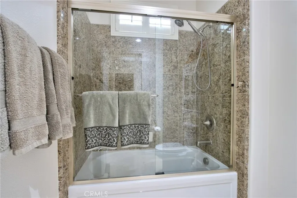 Interior highlights include beautiful stone flooring, custom window shutters, and a large family room with built-in entertainment space. Generously sized bedrooms offer flexibility for family guests or a home office.
