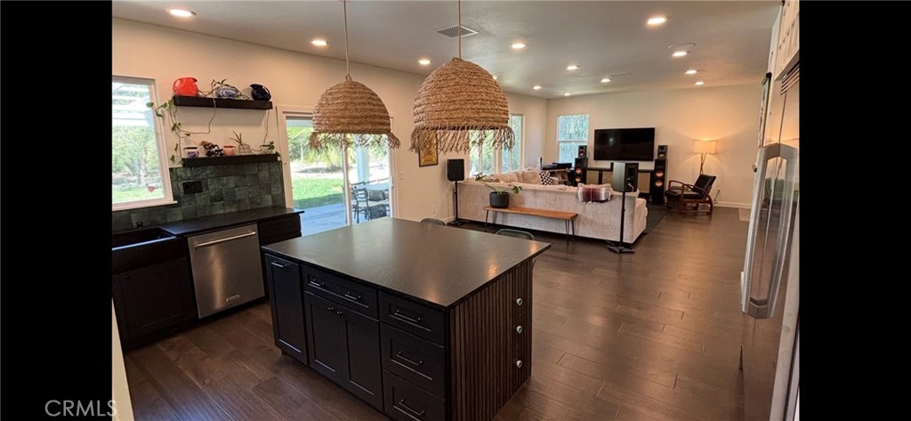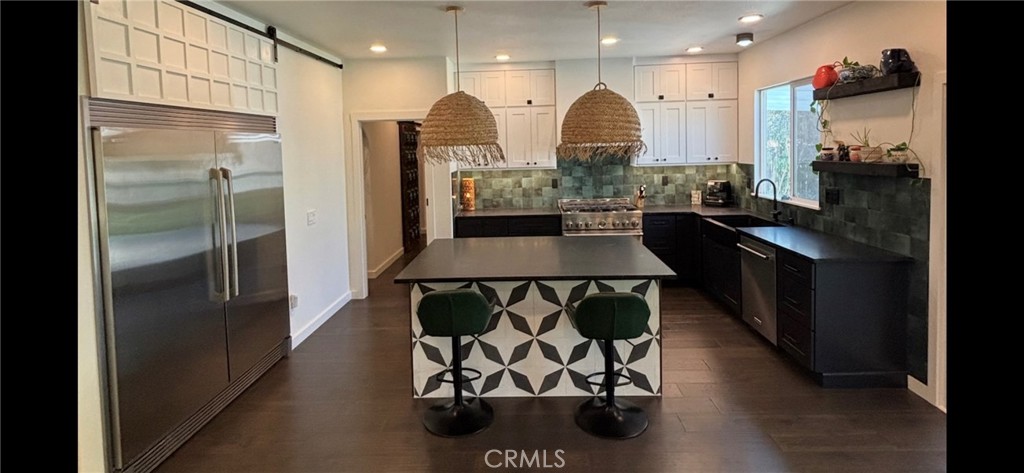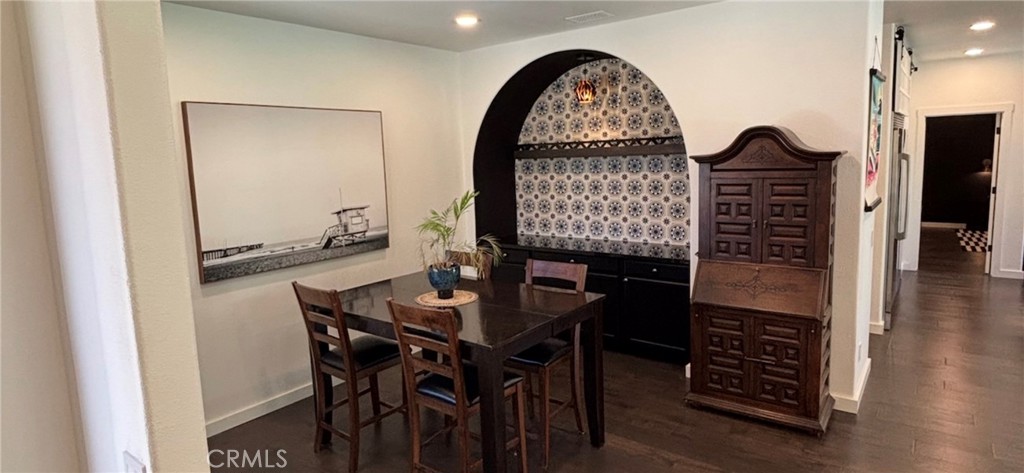 One-of-a-kind upgraded single-story home on a huge, private cul-de-sac lot with very low HOA! Featuring over 100K in upgrades, this property delivers exceptional value and style.Originally a 5-bedroom home, thoughtfully reconfigured into a spacious 3-bedroom layout, this property offers exceptional flexibility and enhanced living spaces. The redesign includes an expanded secondary bedroom and a dedicated dining room featuring a built-in dry bar—perfect for entertaining.The upgraded kitchen is a standout, boasting a large added island with custom storage with a built-in 6′ stainless steel refrigerator, solid wood cabinetry, 36″ gas stove, new microwave, custom hood fan and new dishwasher. The primary suite offers a beautifully remodeled bathroom with a stunning tiled shower, LED lighting with dimmer, and a redesigned walk-in closet with dual hanging rods and custom shelving.Additional interior highlights include solid hardwood flooring, dual-pane windows, led lighting, solid wood doors and trim, and pre-wiring for a security system.Step outside to your private backyard retreat featuring a large covered patio with drainage, gas line for BBQ, gas fire pit, and solar accent lighting—ideal for relaxing or entertaining.The garage includes an epoxy-coated floor and a newer water heater, complemented by a spacious 4-car driveway.Bonus features: seller-owned solar, Ring system, living room surround sound, storage shed, rain gutters, Spanish tile roof, built-in refrigerator.