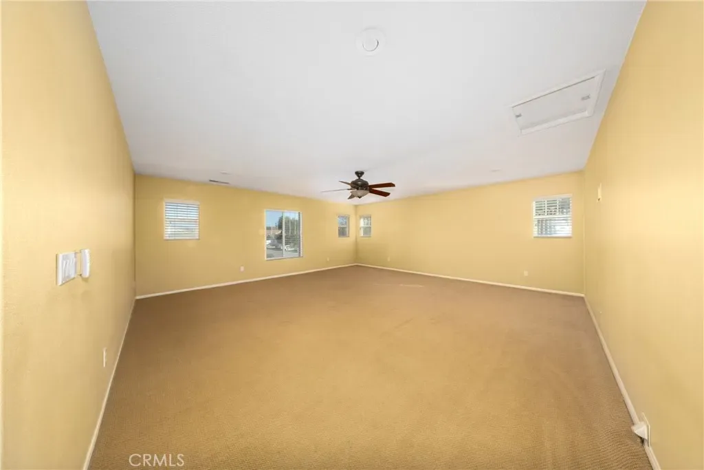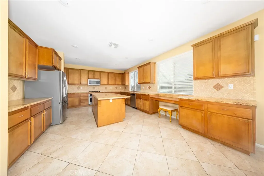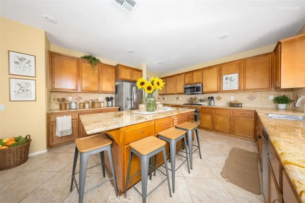 Stylish two-story home located at the end of a quiet cul-de-sac in Menifee. Offering approximately 3,540 sq ft, this well-appointed residence features 5 bedrooms, 3 bathrooms, and a 3-car garage, including a desirable main-level bedroom. The open and versatile floor plan is ideal for both everyday living and entertaining. The entry welcomes you with a formal dining area and a dedicated office/den or flex space. The spacious kitchen and family room showcase tile flooring, abundant cabinetry, a center island, and granite countertops, creating a seamless gathering space. Upstairs, the expansive primary suite includes dual sinks, a separate soaking tub, and a walk-in shower. Three additional bedrooms, a generous loft, and an upstairs laundry room complete the second level. The low-maintenance backyard features a concrete patio, perfect for outdoor dining and entertaining. Conveniently located near schools and parks. No HOA and low taxes. Meticulously maintained and move-in ready.