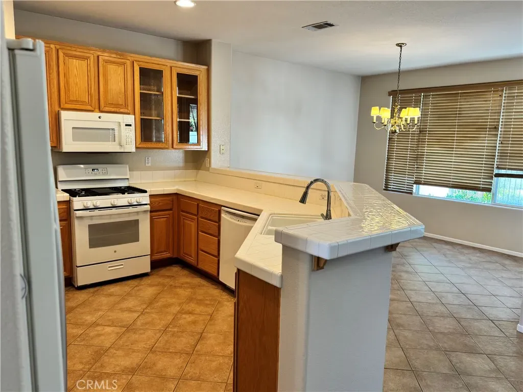 Welcome to resort-style living in the highly sought-after 55+ Oasis community in Menifee! This beautifully maintained 3-bedroom home offers a comfortable and functional layout designed for easy living. The main walkways and kitchen feature durable tile flooring, while the bedrooms are finished with new carpeting for added warmth and comfort.