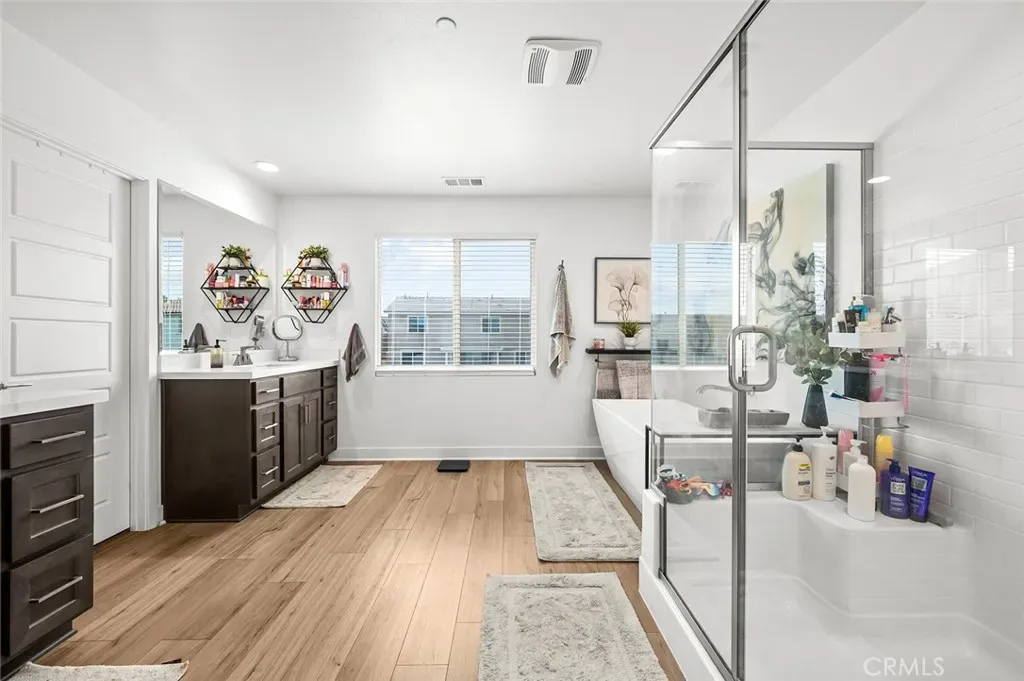 This home is equipped with 25 solar panels and two Tesla battery storage packs, providing exceptional energy efficiency. Additional highlights include dual-zone heating and air conditioning, every room pre-plumbed for ceiling fans, upgraded banister railing on the staircase, and a bonus room with French doors that can serve perfectly as an office or flex space. The primary bathroom offers an upgraded soaking tub for added luxury.