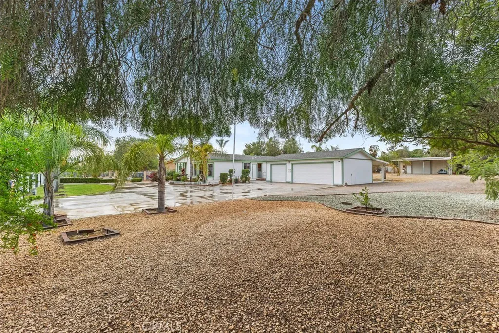 Welcome Home!!!! This beautifully maintained property is fully fenced ideal for privacy with automatic gate entry. Spacious 3-bed, 2-bath home with 1,850 sq ft on a flat, fully developed 1+ acre lot in Menifee, zoned for horses. Updated Kitchen with granite counter tops throughout offers abundant storage cabinets. Home is in great condition with newer windows, & roof & AC have been replace. Features include detached 3-car garage, detached 2-car garage, Huge 50×35 workshop with restroom, large Rv carport 70×21 with hook ups, & car hoist. Plenty of space for boats, trailers, animals, gardening mature fruit trees Located in a peaceful country area with easy access to shopping and dining.
