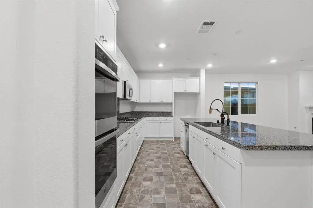 PRICE REDUCED! Bring your offers, sellers open to closing cost credit! Welcome to this stunning single-story estate in the highly sought-after Heritage Lake community in Menifee! Ideally situated at the end of a quiet cul-de-sac, this beautifully upgraded 4-bedroom 2.5 bathroom home offers the perfect blend of privacy, comfort, and functionality — ideal for a growing or multi-generational family. From the moment you enter, you’re greeted by a wide hallway, soaring high ceilings, and a multitude of windows that flood the home with natural light, creating an open and airy ambiance throughout. The desirable open-concept floor plan is designed for modern living and effortless entertaining.The spacious bedrooms are thoughtfully positioned at the front of the home, offering separation from the main living areas. Each bedroom is generously sized and features its own walk-in closet, providing both comfort and ample storage. The expansive living room seamlessly combines a generous family room area with a dedicated dining space, perfect for everyday living or hosting gatherings. At the heart of the home is the gourmet kitchen, featuring stainless steel appliances and an oversized island that serves as a stunning focal point — ideal for casual dining, meal prep, and entertaining. Additional highlights include leased solar for energy efficiency, a whole-home water softener system, a spacious 2-car garage with plenty of storage, and an extended driveway that accommodates up to four additional vehicles. The outdoor spaces truly shine with low-maintenance artificial turf in both the front and backyard, complemented by a drip irrigation system for the landscaping — delivering water efficiency and year-round curb appeal. The backyard is an entertainer’s dream, complete with a covered California Room, built-in fireplace, stamped designer concrete, and ample space to create your own private oasis. Beyond the home itself, Heritage Lake offers an incredible lifestyle with resort-style amenities including multiple pools, sports courts, parks, scenic walking trails, BBQ areas, and a beautiful clubhouse — providing something for everyone to enjoy. Conveniently located near top-rated schools, shopping, dining, theaters, hospitals, and easy freeway access, this home truly checks all the boxes. Don’t miss your opportunity to own in one of the area’s most desirable communities — this is a must-see!