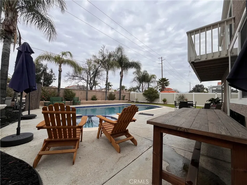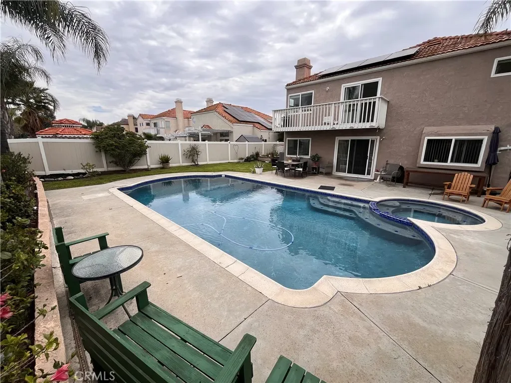 Extraordinary opportunity to own this spacious 5-bedroom, 3-bath home featuring an ideal and flexible floor plan. An oversized upstairs bedroom offers the potential for a second primary suite, perfect for multi-generational living or extended guests. A downstairs bedroom and full bath provide additional versatility for guests, a home office, or flex space. Step outside to your private backyard retreat showcasing a sparkling pool and spa with a new heater, plus ample space for outdoor entertaining, recreation, or storage for your toys. Inside, a dramatic winding staircase overlooks the living room with soaring vaulted ceilings, creating a grand and open atmosphere. The spacious kitchen features granite countertops and opens to the inviting family room, making it ideal for both everyday living and gatherings. Upstairs you’ll find three secondary bedrooms along with the generous primary suite, offering comfort and privacy for all. Additional highlights include a 3-car garage and a nicely sized driveway. A rare opportunity combining space, functionality, and great amenities.Included a new AC system.