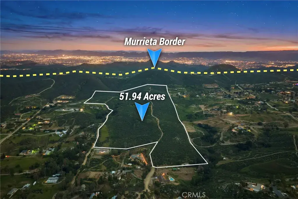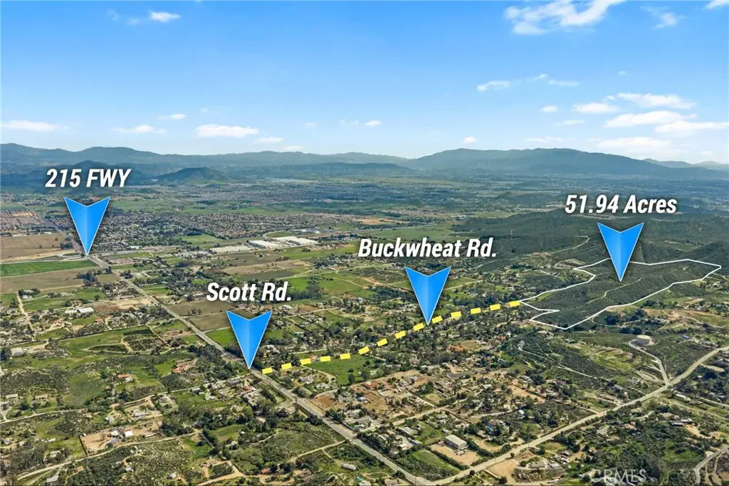 Directions : Use 33795 Buckwheat Rd. Menifee on GPS to get to back gate. 52 Acres of Prime Scenic Land / Menifee/Murrieta Border