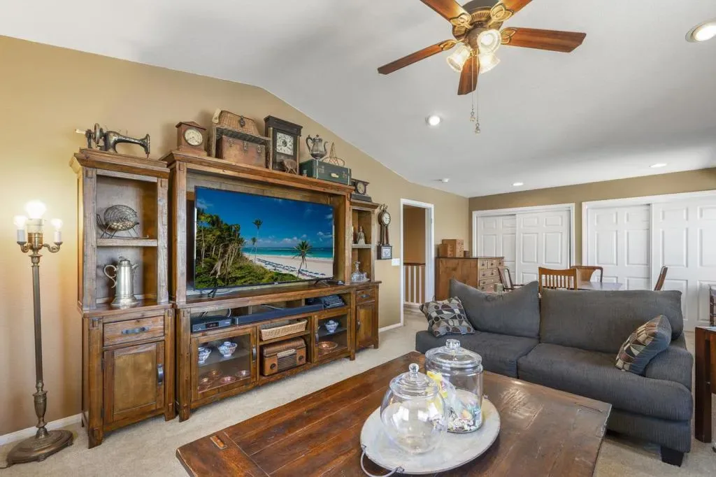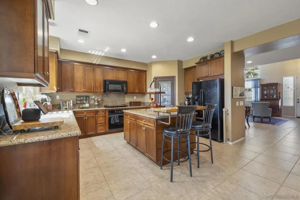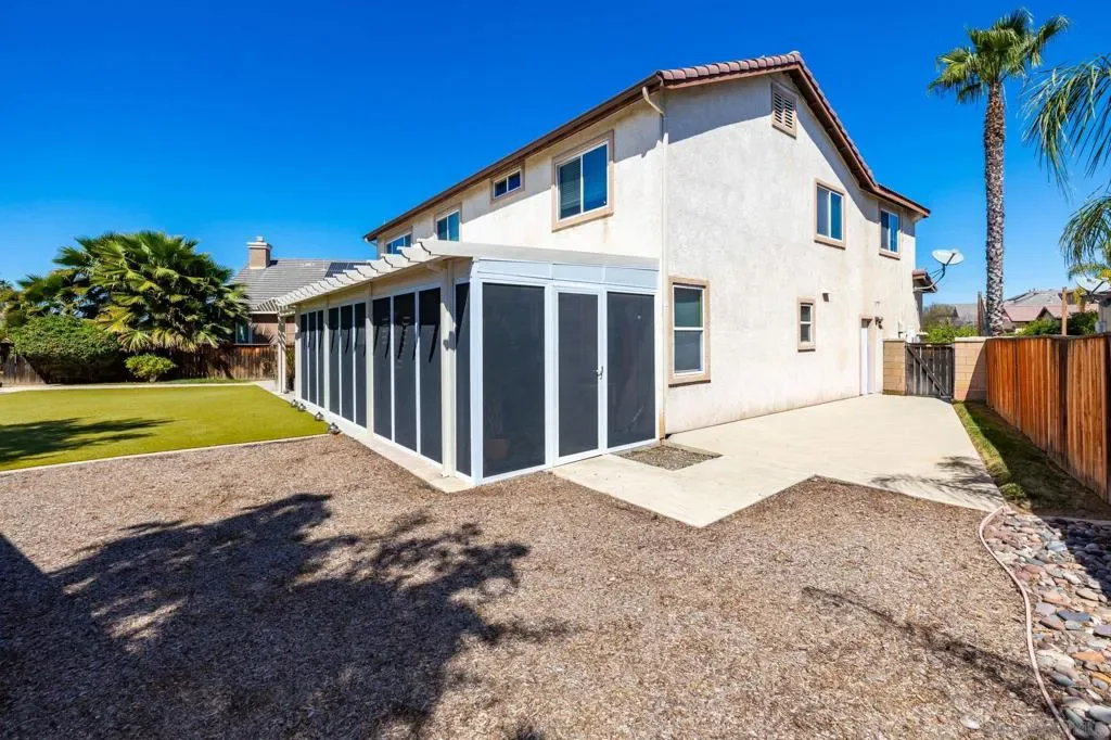 Lovingly upgraded and meticulously maintained four-bedroom, 2¾-bath residence offering refined comfort and elevated everyday living in one of Menifee’s highly desirable neighborhoods. The kitchen is beautifully appointed with sleek granite counter tops, a pantry, and a center island featuring a distinctive wood accent—blending sophistication with everyday durability. The space flows seamlessly into the main living areas and a window-lined enclosed patio, creating a comfortable and inviting environment. A highly desirable downstairs bathroom with a walk-in shower adds flexibility for guests or multi-generational living. Upstairs, a generous bonus room offers a versatile retreat—ideal as a private theater, executive office, or additional lounge space—while the spacious primary suite features a spa-inspired bath with separate tub and shower. Select upstairs areas enjoy scenic mountain views, adding to the home’s appeal. The permitted enclosed patio further expands the living space, creating a serene indoor-outdoor setting for year-round enjoyment. The backyard is designed for ease and relaxation, featuring low-maintenance landscaping with artificial turf, stone accents, and a dedicated seating area. Additional highlights include a convenient downstairs laundry room and an expansive three-car garage complete with a new garage door—perfect for vehicles, storage, or hobbies. Thoughtfully designed with both style and functionality in mind! The home showcases a spacious, light-filled floor plan ideal for modern living and effortless entertaining. Ideally located close to the 215 Freeway and just over Canyon Lake is the 15 Freeway. Minutes away from golfing, various wineries, shopping and more! This exceptional home presents a rare opportunity to experience space, comfort, and understated luxury in the heart of Menifee.