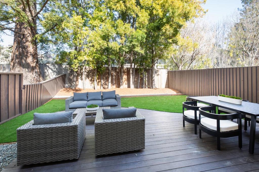 Stunning two-story townhome with expansive landscaped yard in prime Sharon Heights neighborhood offering the feel of a single family home. 3 bedrooms and 3 remodeled baths. Elegant living room with fireplace attached to dining room overlooking backyard garden. New hardwood flooring on main level New carpet on stairs and upstairs bedrooms. Gourmet kitchen with stainless steel appliances. Downstairs bedroom suite with remodeled bathroom. Exquisite primary suite with private bath. 2nd bedroom suite upstairs with private deck and access to extra storage. Expansive sunny landscaped backyard with deck and mature landscaping. Award winning Las Lomitas Schools. Newly remodeled clubhouse with 2 community pools. Large attached 2-car garage. Down the street from Sharon Heights Shopping Center and minutes to Stanford Shopping Center, Stanford University, and Sand Hill Road venture capital centers.