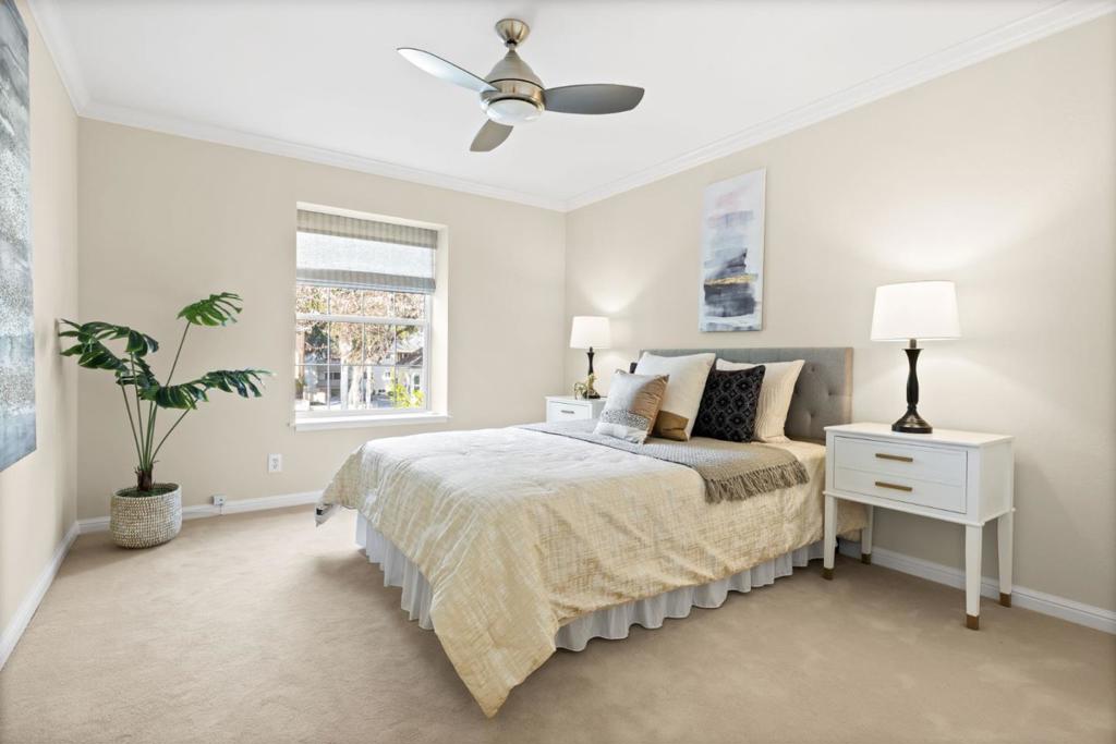 Welcome to this exquisite home located in the lovely Oak Grove Community, in the heart of Menlo Park. Fantastic location, within walking distance of Springline, Caltrain, & Santa Cruz Avenue’s shopping, dining & entertainment. With 1,286 sq ft of living space, this 3-bd, 2-ba home offers a functional floor plan, is in Exceptional condition & is ready to move in! The well-appointed chef kitchen is designed for high efficiency with modern appliances, cherrywood cabinets, granite countertop, breakfast bar, pantry & tiled floor. An elegant dining room seamlessly integrates with the living room where a fireplace creates a cozy atmosphere for relaxing. Three spacious bedrooms, primary suite included, offer walk-in closets with custom built organizers providing ample storage space. Two beautiful bathrooms showcase marble countertop, marble flooring & shower surround. Additional features include high ceilings, crown molding, designer paint & fixtures, Miele washer/dryer, central AC, Lennox furnace, NEST thermostat, dual-pane windows, private balcony, two car parking, storage room, community pool, fitness room, a guest suite & much more… Well maintained grounds with mature trees & colorful flowers. Excellent Menlo Park Schools. Do not miss the opportunity to make this home yours.