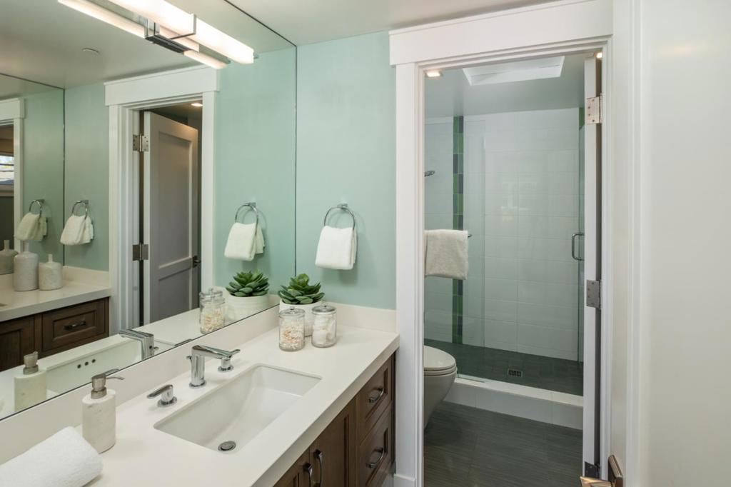 This exceptional home spans three levels of refined living completed in 2014. Classic Craftsman styling defines the exterior, while the interior delivers a sophisticated modern aesthetic from gleaming walnut floors throughout to clear glass panels framing the central staircase and clusters of pendant lights. Formal living and dining rooms are complemented by a spacious kitchen great room, plus there is a generous recreation room with full bar and fully customized wine cellar all spaces spaces designed for gathering and entertaining. There are 6 well-appointed bedrooms, 4 with en suite baths, arranged across all levels for flexibility and privacy. Outdoors, the beautifully landscaped corner lot provides an inviting setting for relaxation and play in a premier central Menlo Park location just one-half mile from downtown shopping and dining.