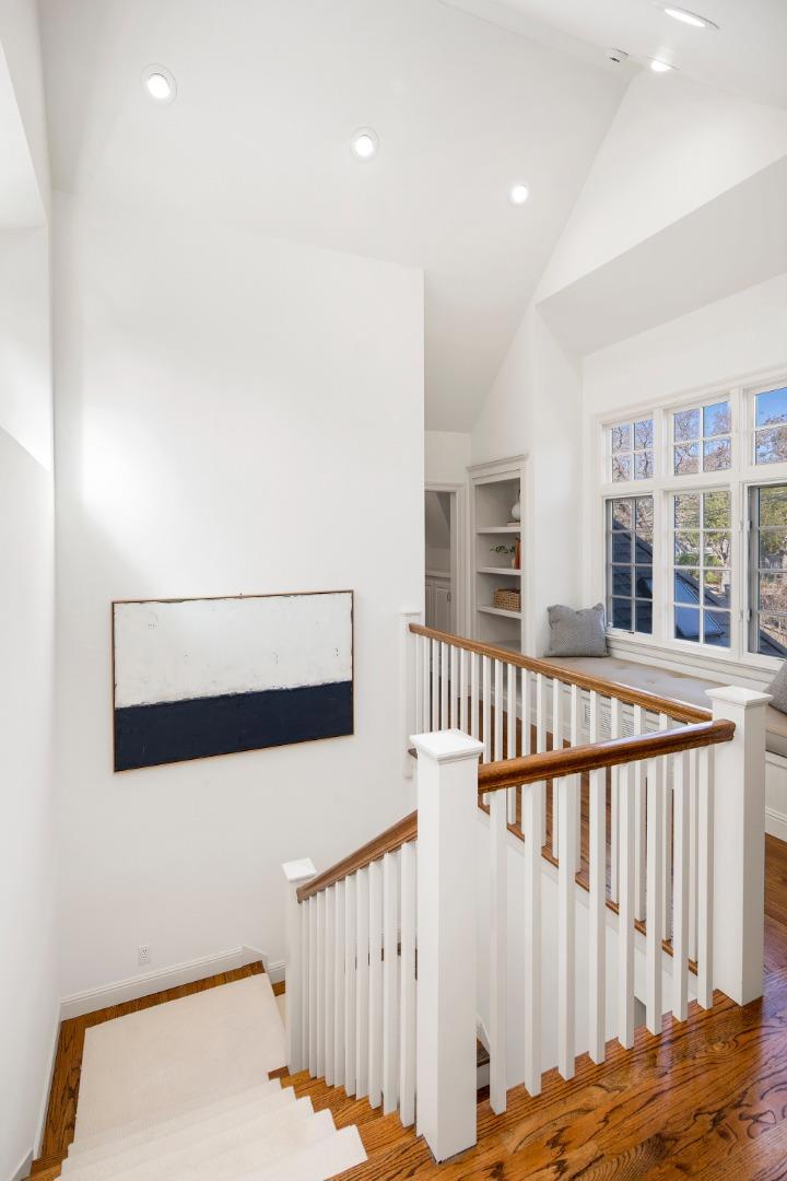 This prime Central Menlo Park home sits on a highly desirable street, on an extra-large corner lot with expansive front and back yards. Move-in ready, it blends timeless elegance with sophisticated California living. Main level: spacious primary suite with beamed ceilings, walk-in closet, generous bathroom (with cathedral ceilings and jetted tub), and French doors to a large private deck shaded by romantic trellis. Adjacent is a versatile large 4th room with double French doors-ideal as office, nursery, or guest space. Upstairs: two extra-large bedrooms with high peaked ceilings, open hallway with built-ins, window seat under soaring ceilings, and spacious bathroom. Vaulted ceilings and fine moldings throughout. Formal entry to living room with soaring ceilings and large rounded sunroom with French doors-perfect for office, dining, or addtl. seating. Large formal dining room with soffit ceiling and wall of French doors to backyard. Kitchen has center island, dining nook, semicircular windows with panoramic views. Gardens feature spectacular specimen rhododendrons curated by the owner, a renowned expert, blooming vibrantly into a colorful, tranquil oasis. Extra-large attached 2-car garage. In central Menlo Park, moments from Stanford, easy Silicon Valley access, top-rated schools.