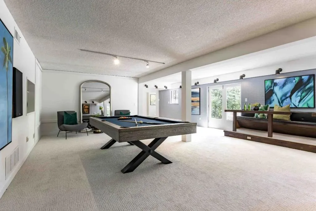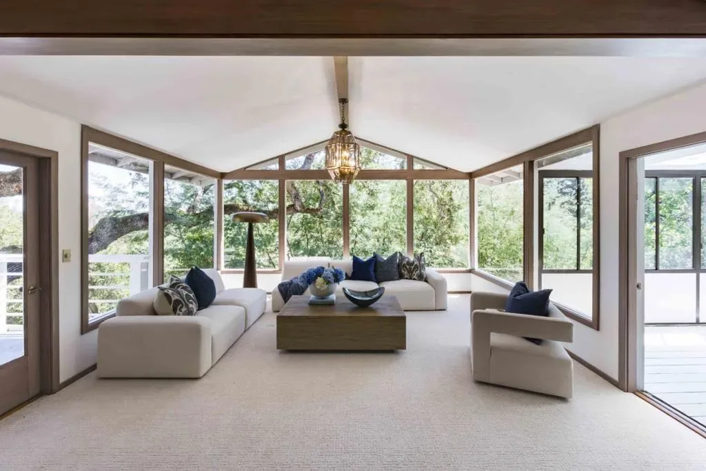 Tucked away on a secluded lot of nearly .70 AC in Sharon Heights, this spacious home offers over 5,600 SF of space in a serene, woodsy setting. Towering trees and foliage surround the home, which sits well back from the street on an extended driveway for added privacy. Soaring ceilings and abundant natural light create an airy ambiance throughout, while expansive gathering spaces include a large living room with a fireplace, a sunroom, a bar-equipped lower level, and a chef’s kitchen with Sub-Zero and JennAir appliances. Four comfortable bedrooms include three with en suite baths, and the home also features an elevator, office, & outdoor spaces including a peaceful second-level terrace, a deck, and a patio ideal for relaxing or entertaining. All of this just moments from the Sharon Heights Golf & Country Club, scenic parks, shops, and restaurants, downtown Menlo Park, Sand Hill Road, and Interstate 280, with access to the acclaimed Las Lomitas school district (buyer to verify eligibility).