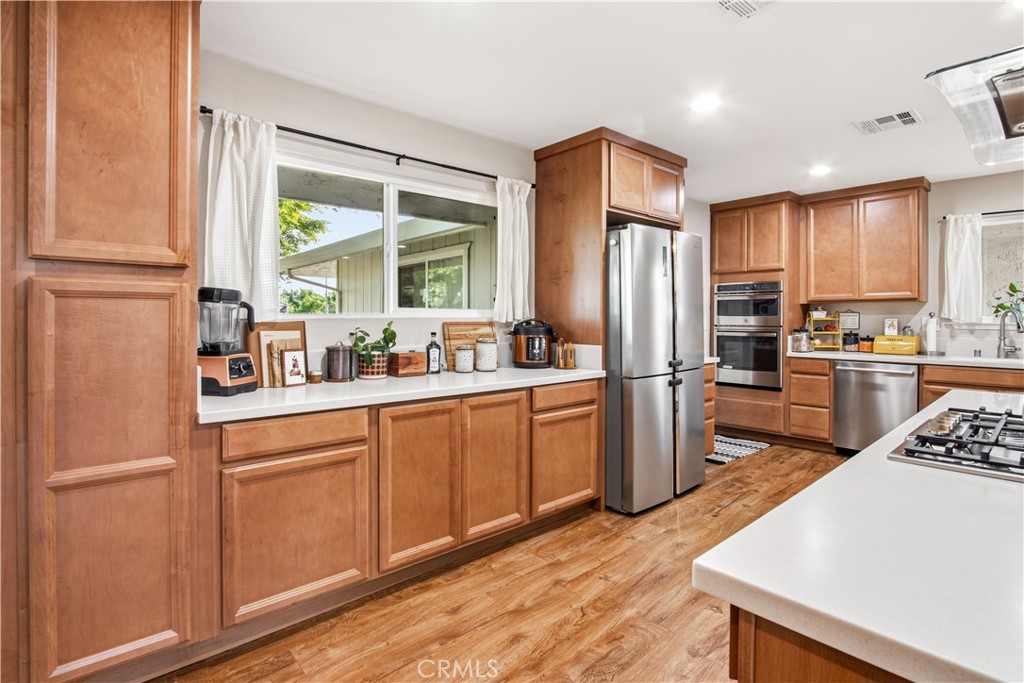 If you’ve been searching for a move-in-ready home with a pool, your search ends here! Welcome to 1137 Julie Drive. Located in a well-established neighborhood near North Bear Creek, it offers 4 bedrooms, 2 bathrooms, and 1,812 square feet of living space. This beautifully maintained home had a complete interior remodel six years ago. The improvements included a new kitchen with an abundance of cabinetry, all new appliances, recessed lighting, laminate wood flooring, new carpet in the bedrooms, completely remodeled bathrooms, a new HVAC system, large new windows that let in plenty of natural light, and a new roof! With all this, you’ll get to enjoy a bright and open floor plan filled with natural light and spacious bedrooms. The heart of the home is the inviting kitchen and great room, seamlessly combining the family room, cozy fireplace, and dining area – perfect for everyday living and entertaining. The living room sliding doors open directly to a backyard featuring a stunning design that includes a pool, fire pit, and an expansive 40′ x 16′ redwood deck built approximately three years ago. The deck has been regularly stained and water-treated each season and extends across all three sliding glass doors, providing convenient access and added safety around the pool. All gates are equipped with self-closing latches for peace of mind. The entire home even has seamless gutters, installed less than two seasons ago by Benchmark Roofing, that include seven downspouts for efficient drainage. This home truly combines comfort, functionality, and outdoor enjoyment.
