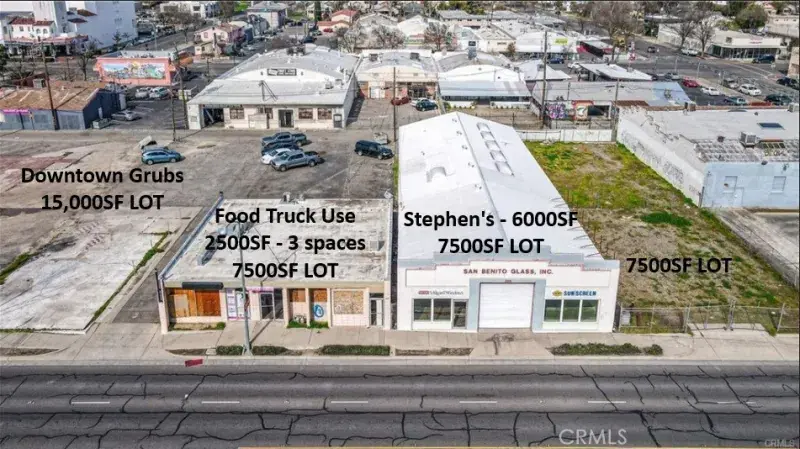 Prime Downtown Merced Commercial Portfolio – 5 Contiguous C-C Parcels. Rare bulk sale opportunity consisting of five contiguous Central Commercial (C-C) zoned parcels totaling approximately 1.03 acres. All Fully improved commercial lots with utility hookups in place and precious home of Kentucky Fried Chicken drive through. The hard corner consists of a 15,000 SF parcel and operates as the established “Downtown Grubs” food truck plaza, generating strong foot traffic with potential gross rents of approximately $15,000 per month. Improvements include: a ±2,500 SF retail building currently supporting food truck operations (restrooms, storage, utility sinks). A ±6,000 SF retail warehouse leased to an antique & collectibles dealer at $4,125/month gross. All tenants are on month-to-month leases, offering flexibility for investors or owner-users. Located within walking distance to Downtown Merced and near major national retailers including Chick-fil-A (new site), Starbucks, In-N-Out, Popeyes, and Taco Bell. Excellent proximity to Hwy 99 and downtown landmarks such as UC Merced Downtown Campus Center, El Capitan Hotel, and the Mainzer Theatre. Strong existing income with redevelopment and value-add potential in a high-visibility commercial corridor.